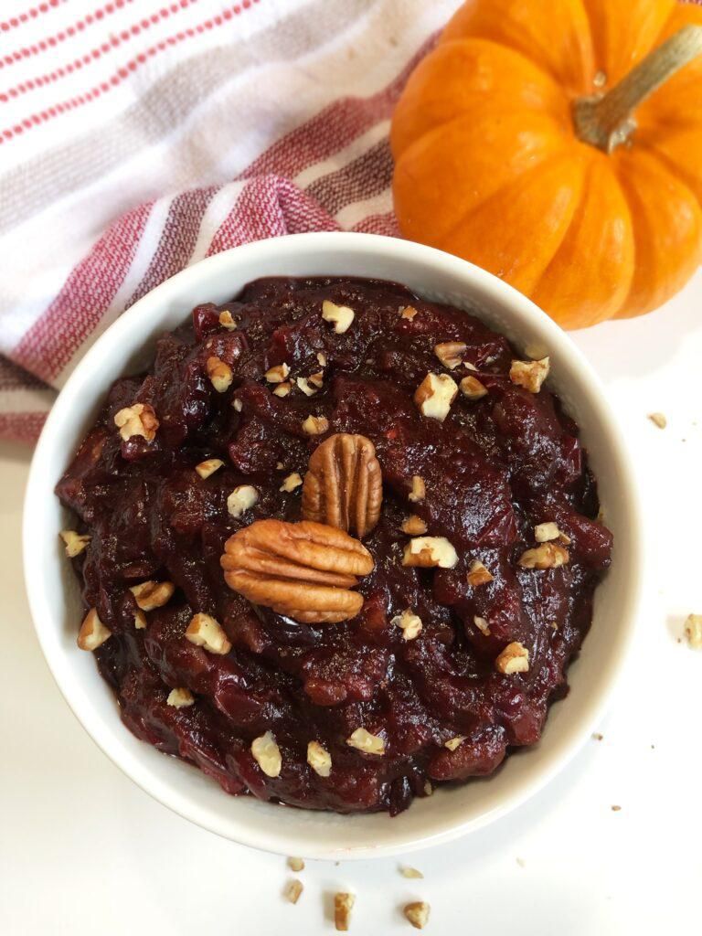 A sweet and tangy dish with a bit of crunch that is perfect for Thanksgiving or using as a jam for toast, bagels, and english muffins.
