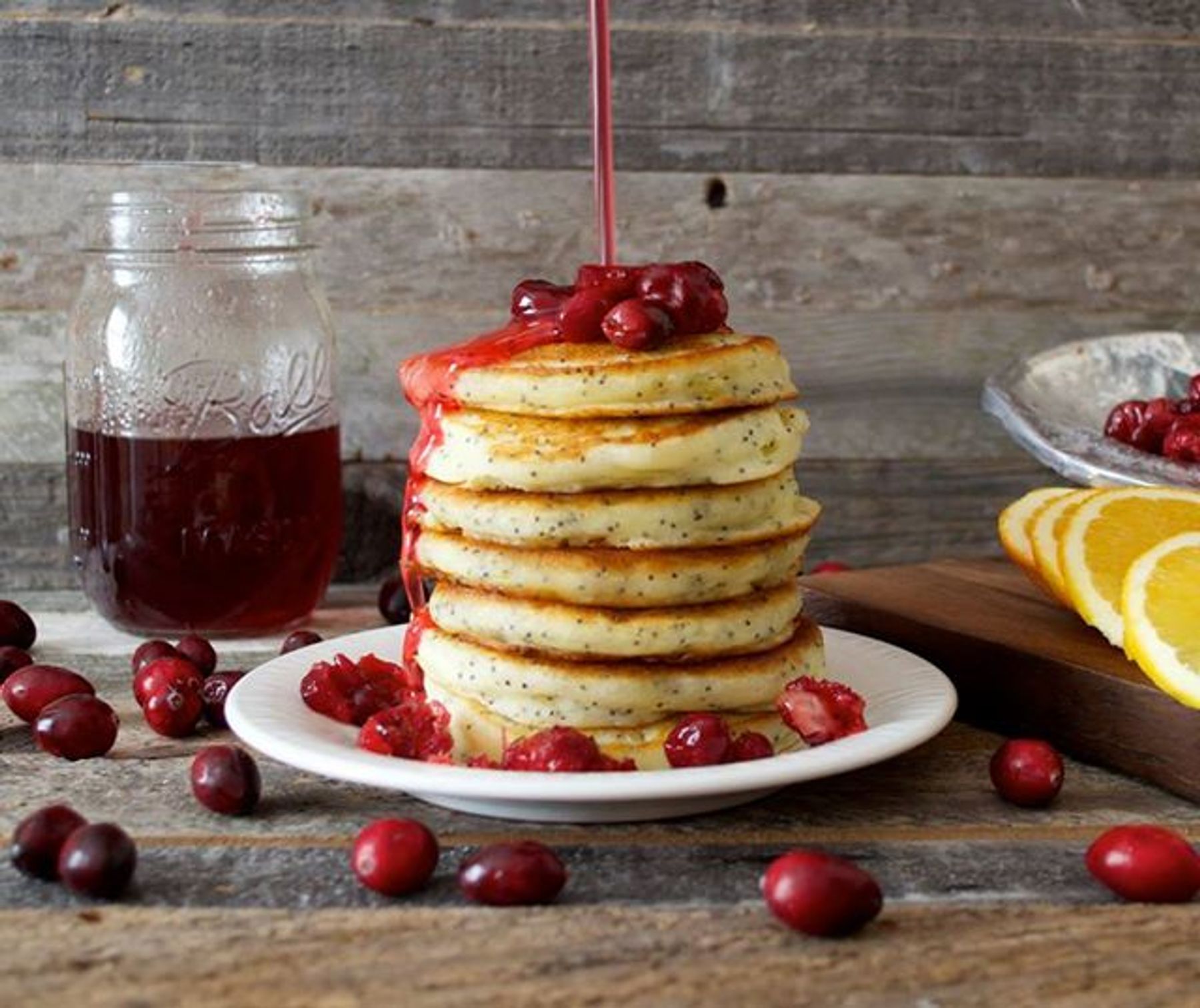 Cranberry Syrup with Orange Poppy Seed Pancakes
