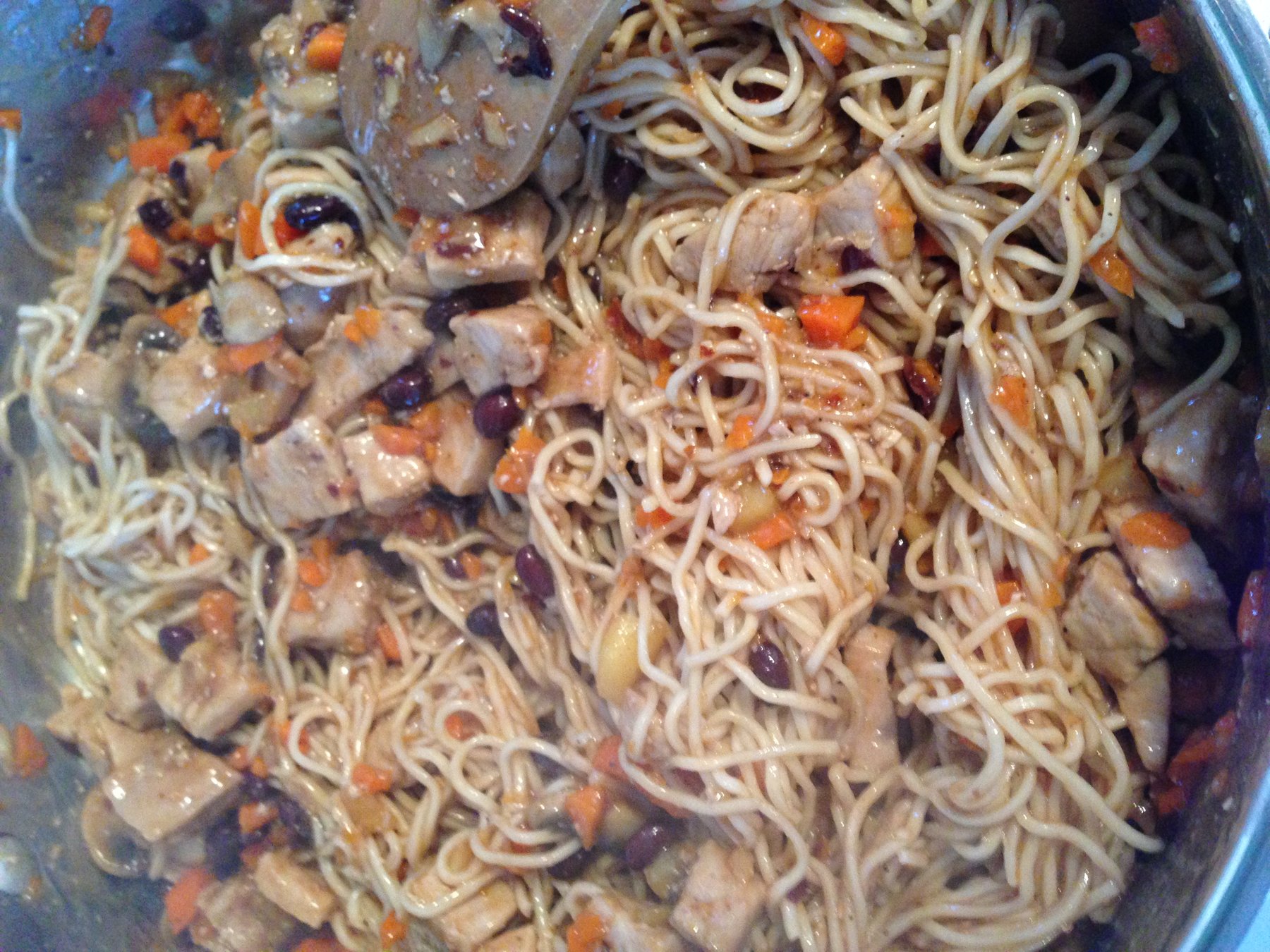 Crazy Frugal Sweet n' Heat Pork, Black Bean, and Chow Mein Noodle Dinner