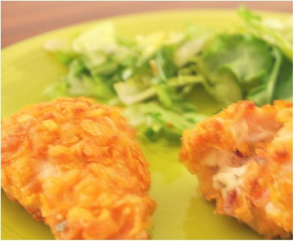 Thin chicken breasts rolled up with a cream cheese and bacon stuffing mix.
