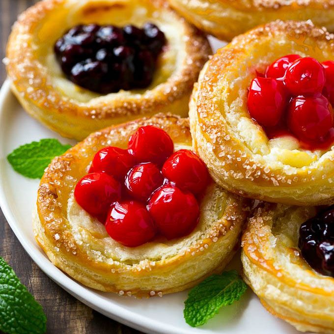 These cream cheese danish are a light and flaky pastry topped with a sweet cream cheese filling and fruit. An easy yet elegant breakfast option!