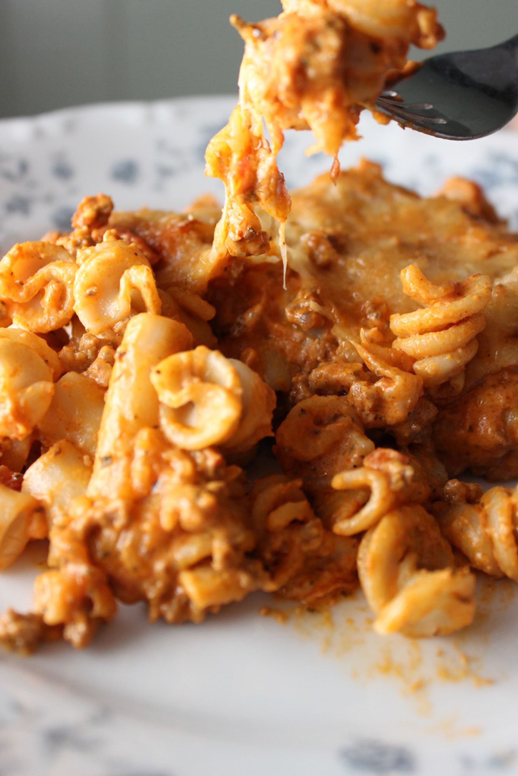 1 pound pasta cooked according to directions (we used spirals, but any will do)