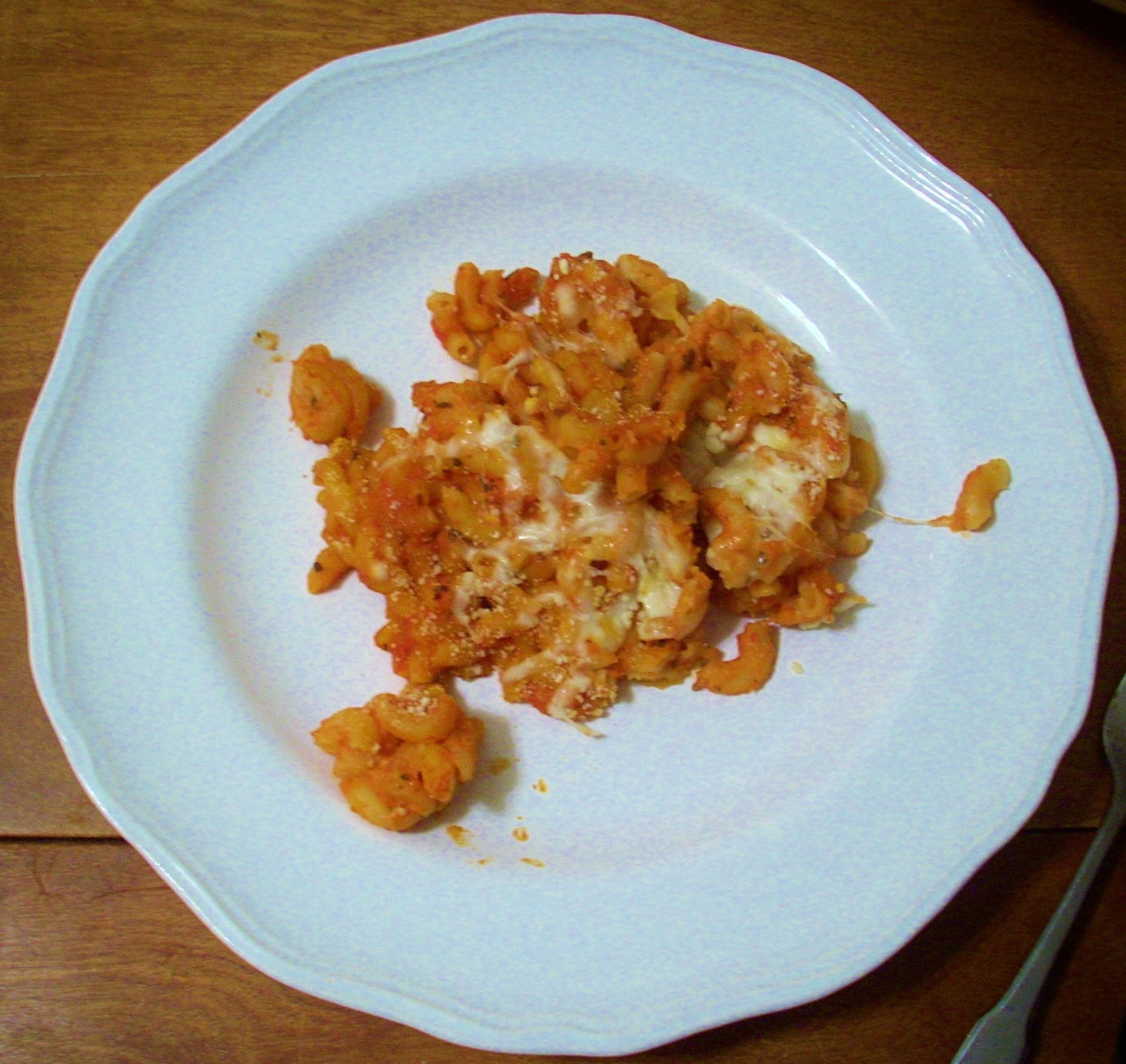 6. Sprinkle both cheeses evenly on top of the pasta.