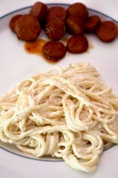 Cook the pasta according to the package directions until al dente. Remove 1 cup of pasta water and then drain the pasta.