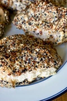 Preheat the oven to 400ยบ F. Line a baking sheet with parchment paper or a silpat. Use a sharp knife and cut the chicken breasts almost in half horizontally.