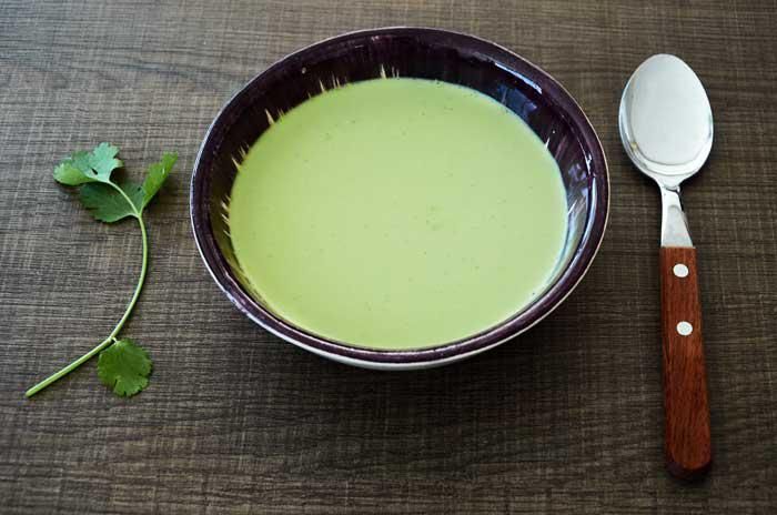 This is a very rich yet delicately flavored cilantro cream soup. Why do we say it's rich? Because, you use heavy Mexican cream not corn starch to thicken the soup.
