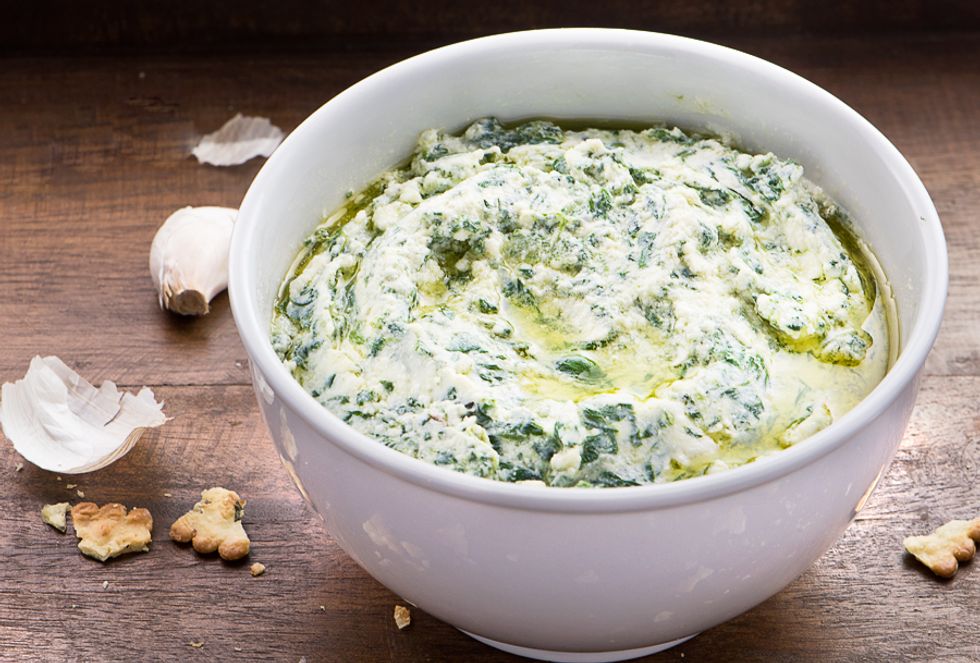 CREAMED SPINACH RECIPE WITH FETA CHEESE AND BAKED GARLIC