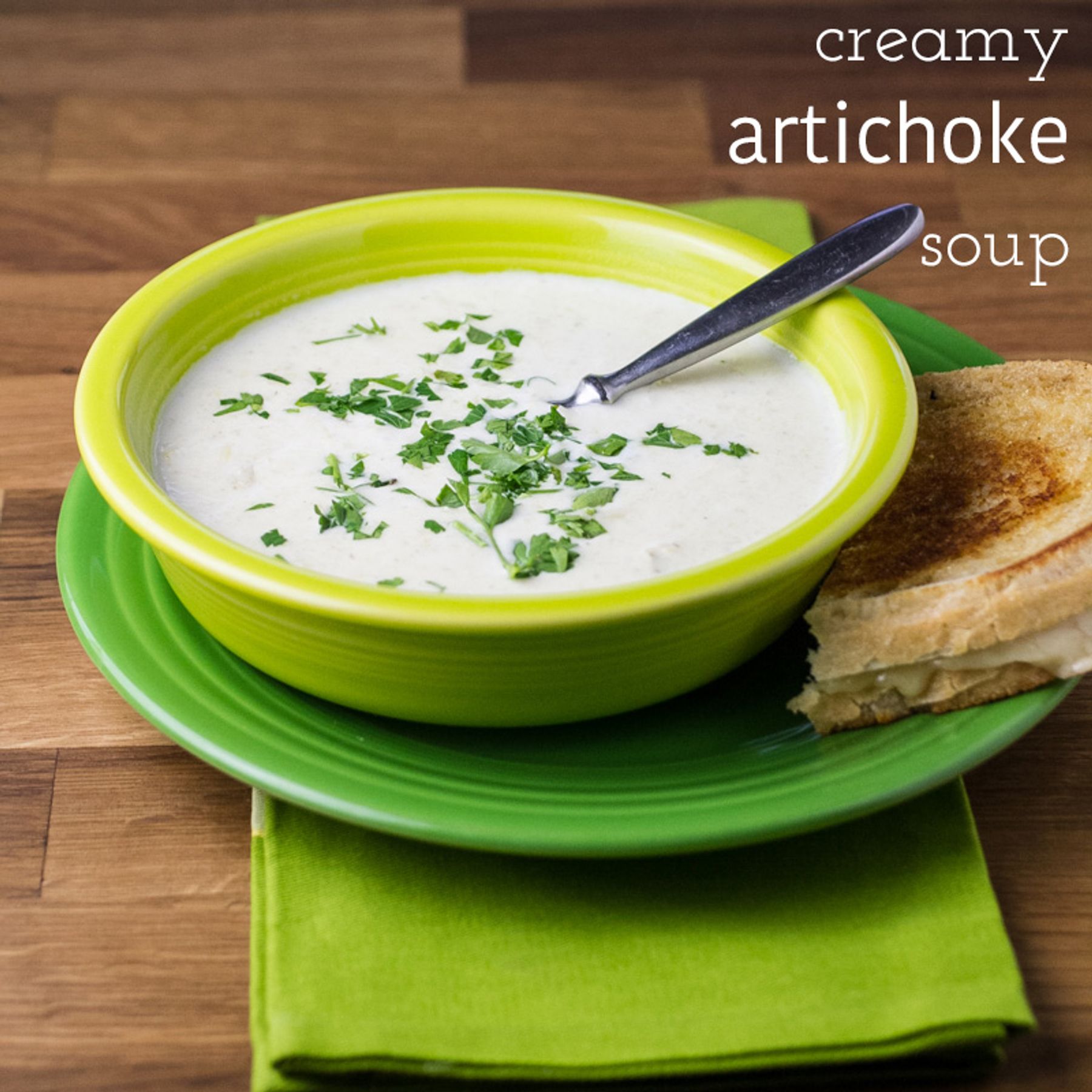 Creamy artichoke soup packs lots of artichoke hearts into a creamy base with Gruyere cheese. How could you possibly go wrong with this combination?