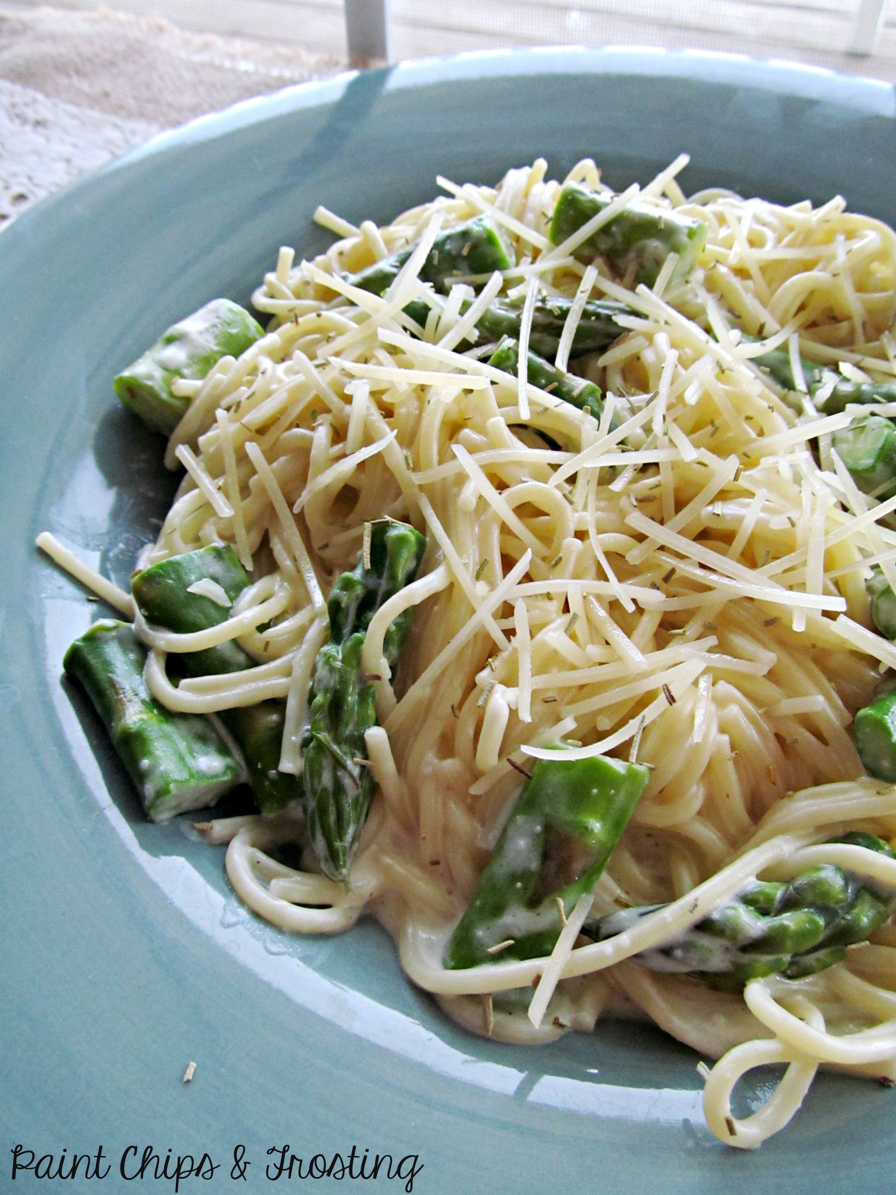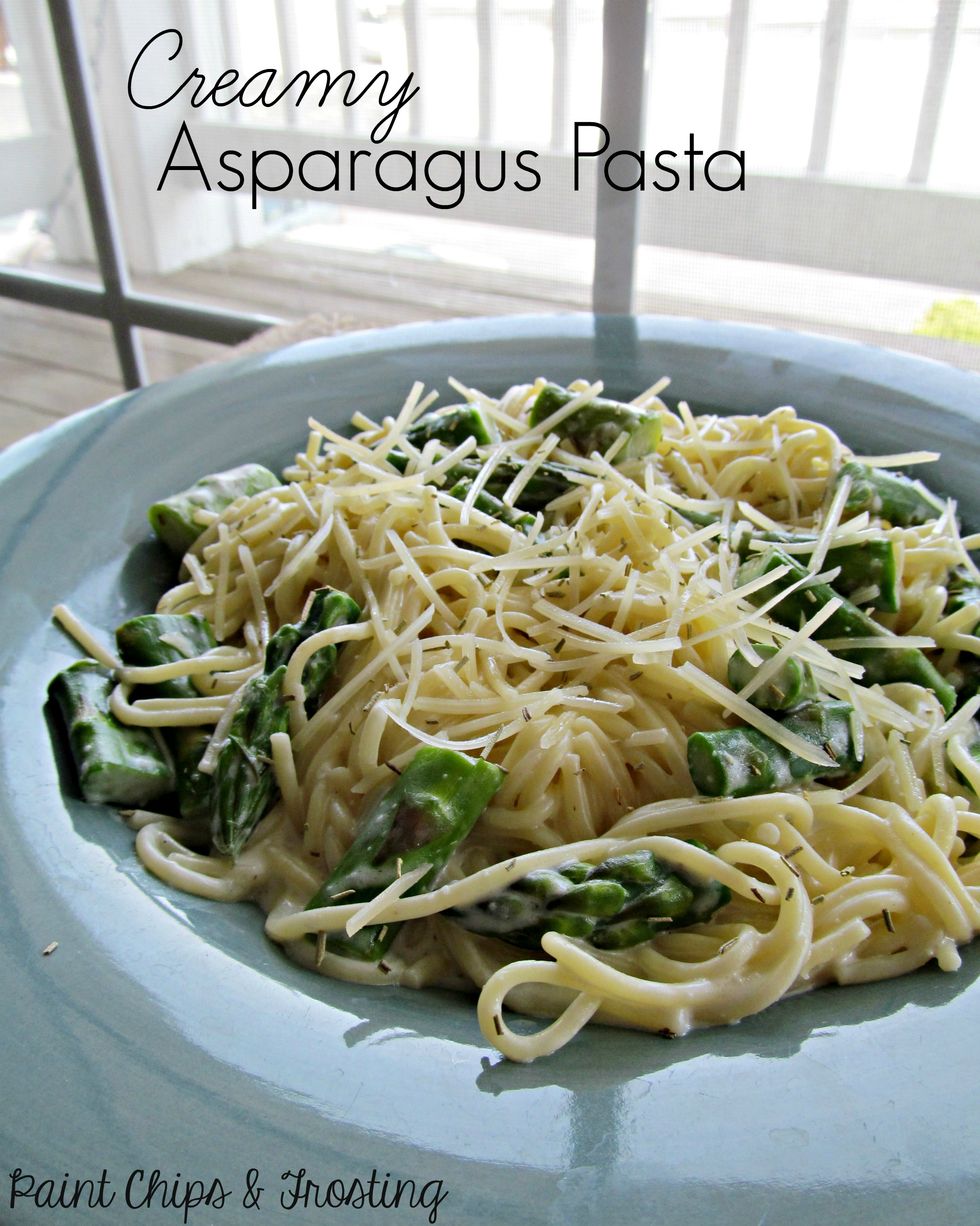 Pasta tossed in an easy homemade cream sauce with asparagus and a hint of garlic and lemon. Comfort food at its finest!