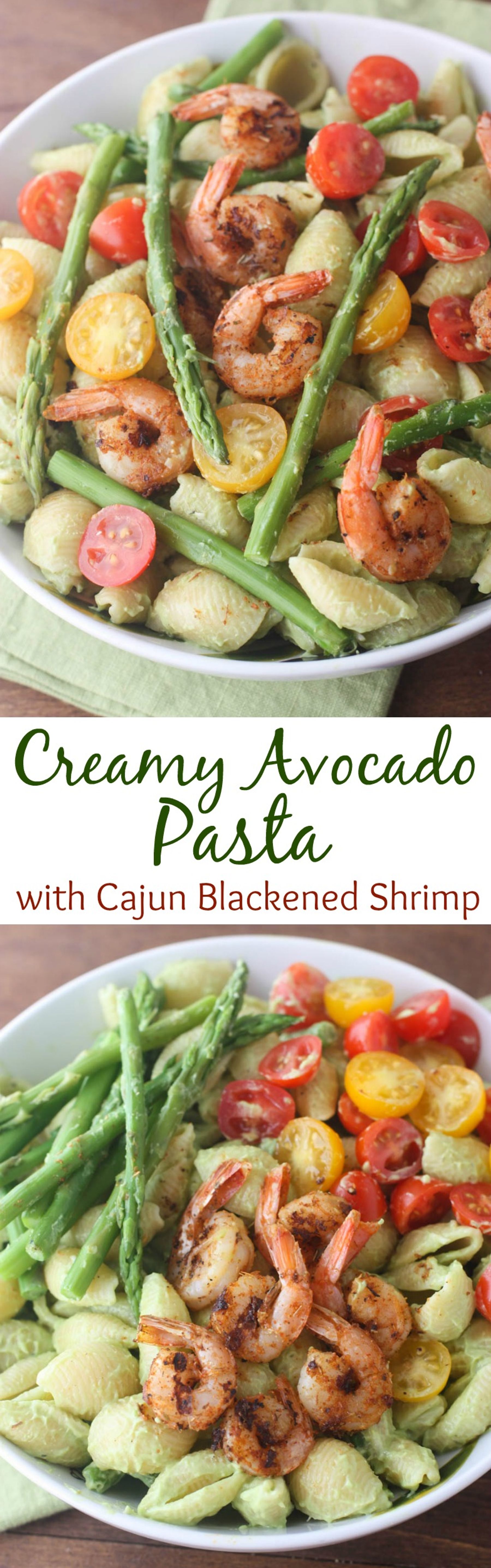 Creamy Avocado Pasta with Cajun Blackened Shrimp