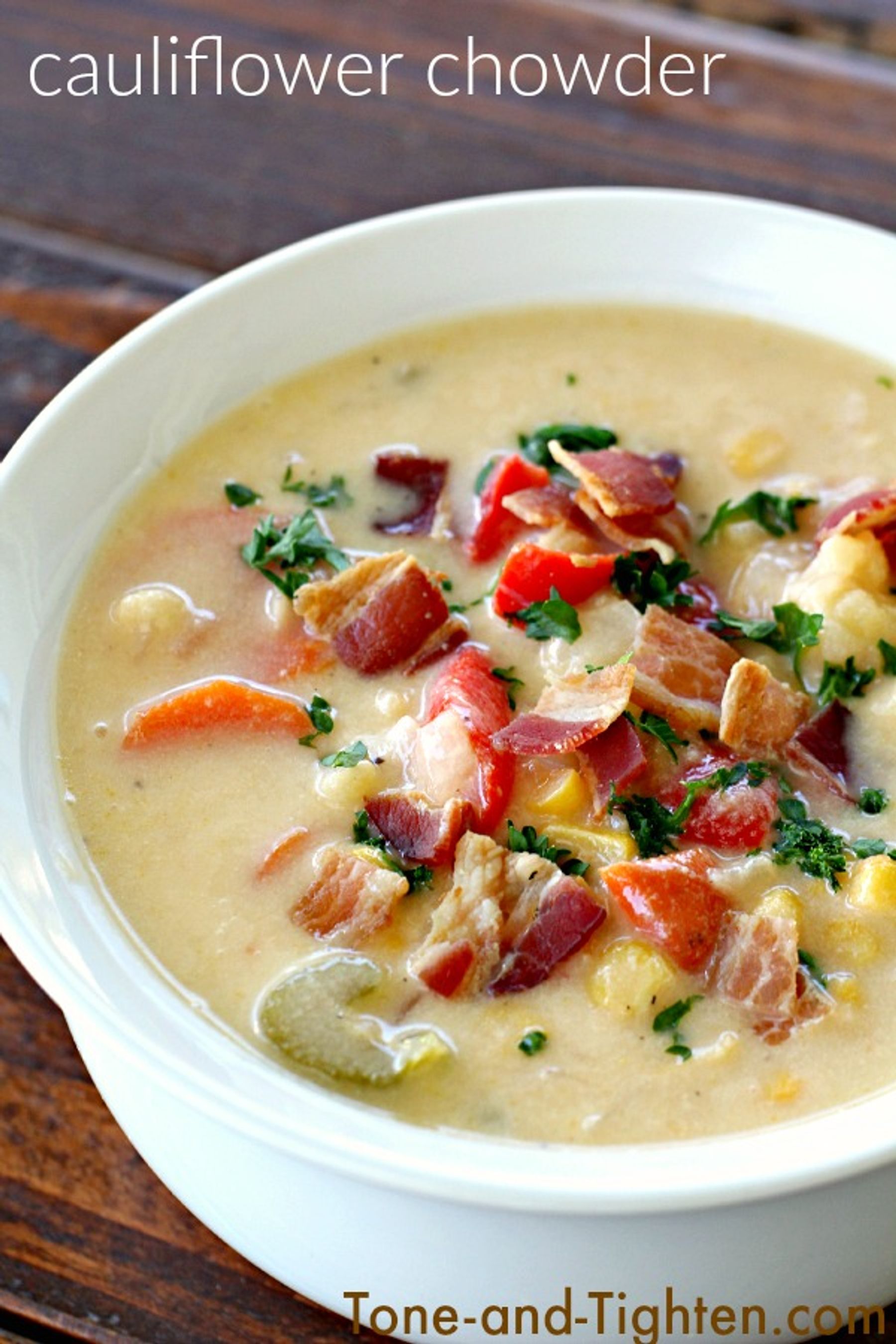 Creamy Cauliflower Chowder Jared Beckstrand | Tone-and-Tighten.comJune 19, 2018 40 tone-and-tighten.com The secret to this creamy dish: CAULIFLOWER! Click here for the recipe: See the full directions on my site tone-and-tighten.com