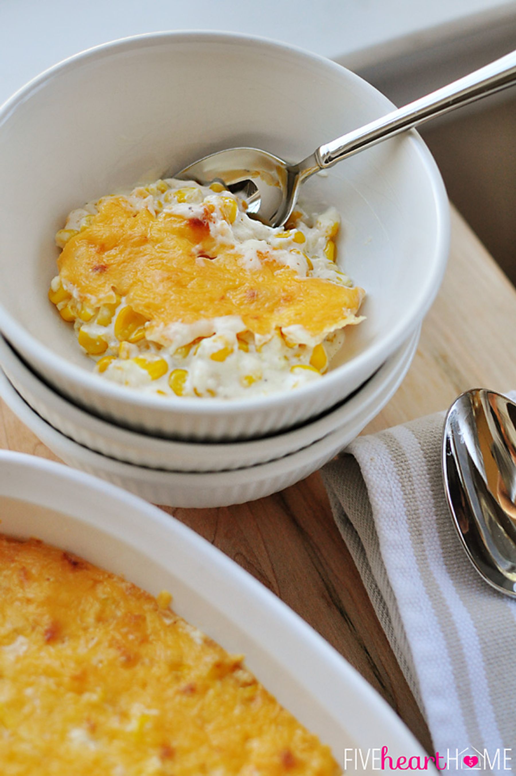 Cream cheese adds richness to sweet corn in this comforting side dish, with extra flavor from sharp cheddar cheese and (optional) diced jalapeños.