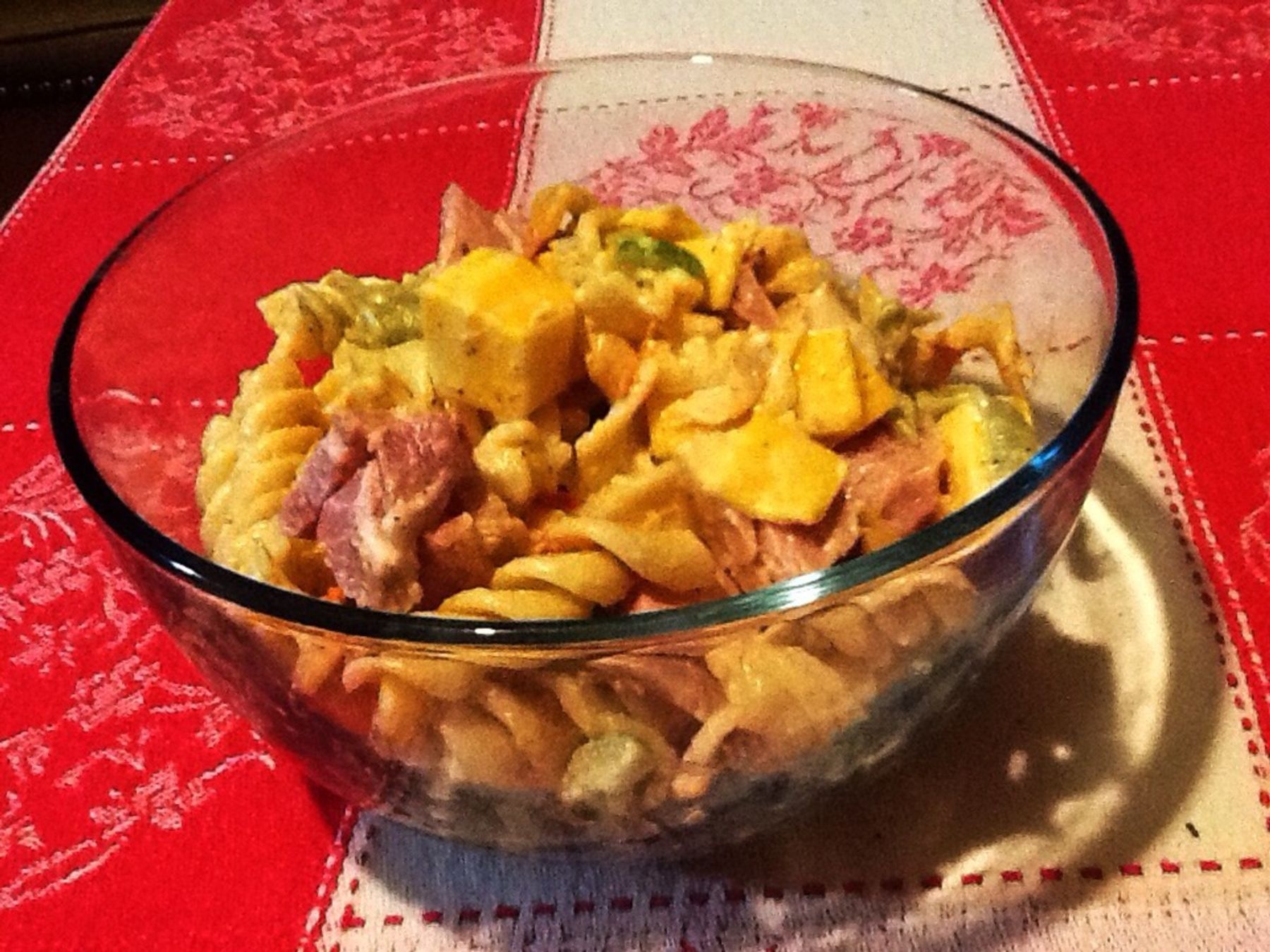 A pasta salad is delicious with a creamy or an vinaigrette dressing. This recipe for creamy cheesy rotini salad is so flavorful. Make for a salad or a meal. Make it to your taste!