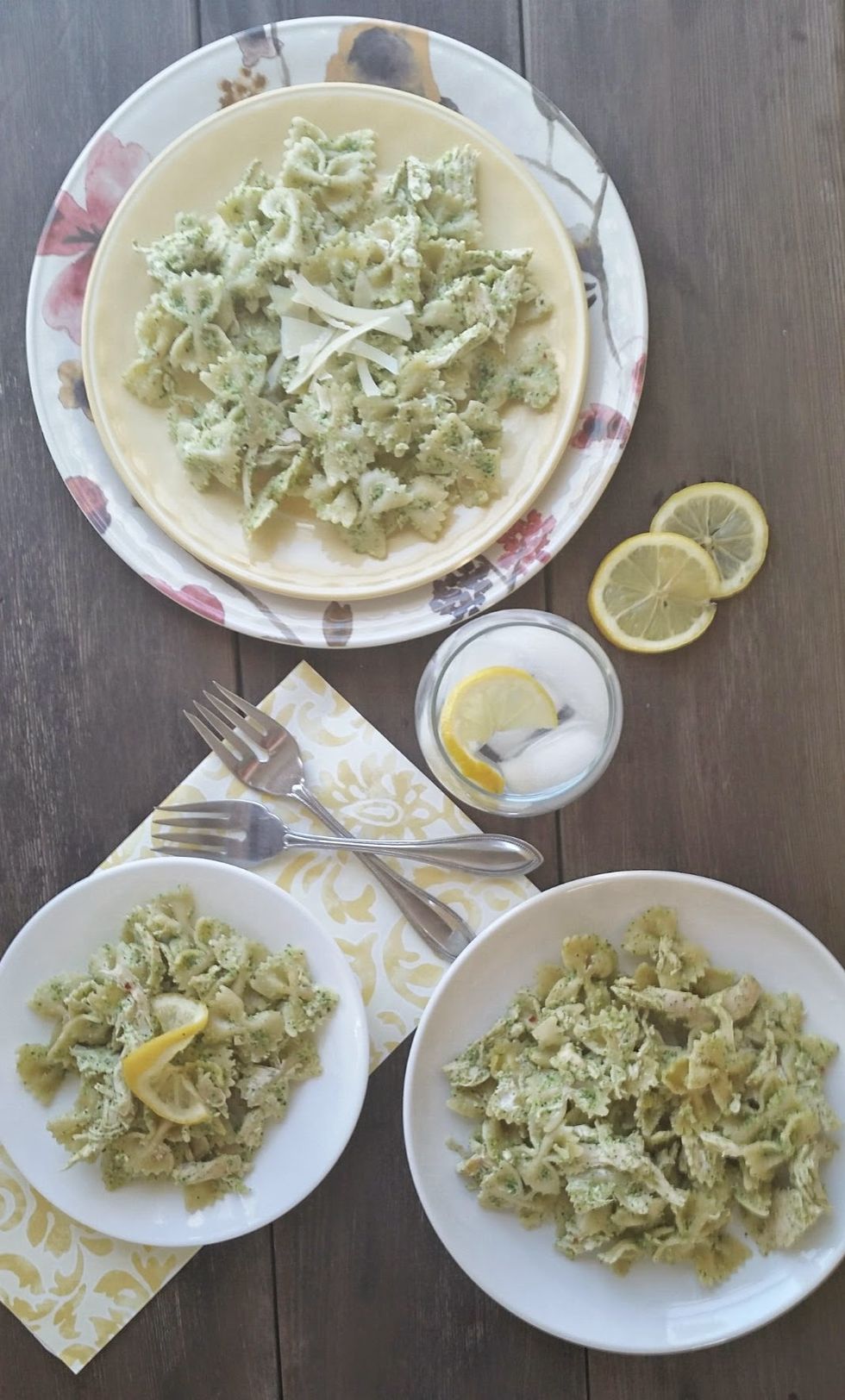 This creamy chicken and broccoli pesto is inspired and slightly tweaked from one of their featured recipes! It's a bright, colorful good for you pasta dish that has perfect pasta, shredded chicken, broccoli pesto, and just a touch of creaminess! This creamy chicken broccoli pesto is a great way to get my kids to eat their greens, and as they gobbled it down they had no idea they were eating broccoli! Oh yeah, I am doing the happy dance! It's the little things in life! :-)