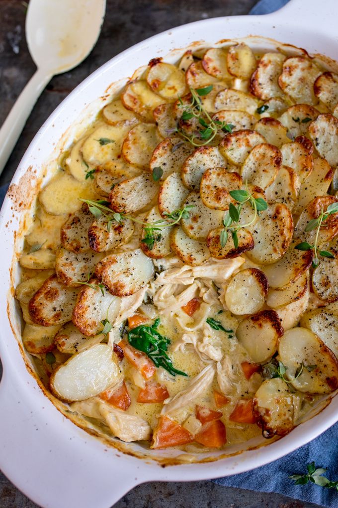 This Creamy Chicken and Potato Bake with extra veggies is a whole meal in one dish!
