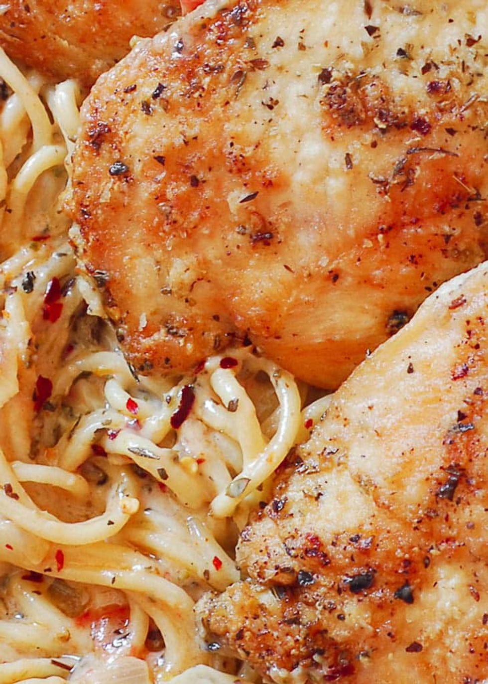 Chicken Pasta in Creamy White Wine Parmesan Cheese Sauce will remind you of your favorite Italian dining experience! Italian seasoning, white wine and Parmesan cheese come together as one to flavor this creamy chicken pasta combination. With only 30 minutes of total work, it’s simple, fast and delicious!