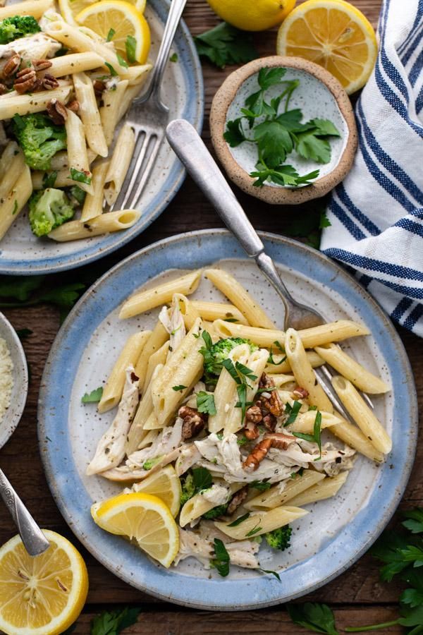 Creamy Chicken Pesto Pasta takes advantage of a few store-bought shortcuts for a quick, easy and flavorful stovetop dinner! Toss tender pasta, rotisserie chicken, and fresh broccoli in a creamy pesto sauce that's seasoned with garlic and Parmesan cheese. A sprinkling of rich, toasted pecans is the perfect finishing touch on this simple 30-minute meal. Serve it with a side of crusty garlic bread or a French baguette to soak up any extra sauce!