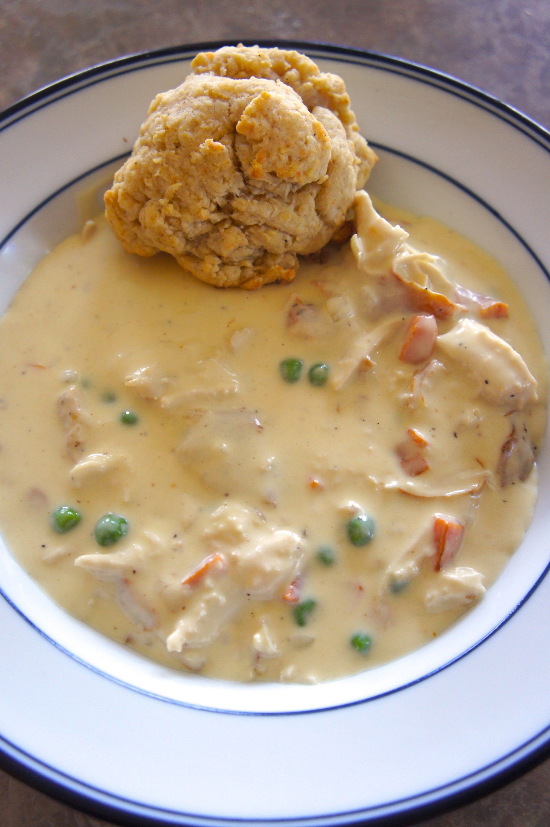 Creamy Chicken Pot Pie Soup with Parmesan Drop Biscuits