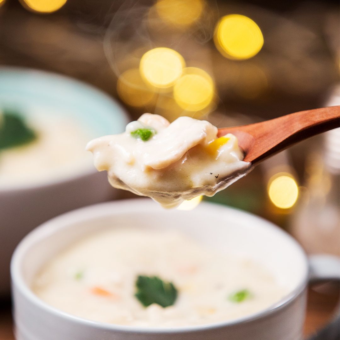 Warm creamy chicken soup is perfect to comfort your body in cold weather. The soup brings warmth to our body and soul, makes your cold nights warmer.