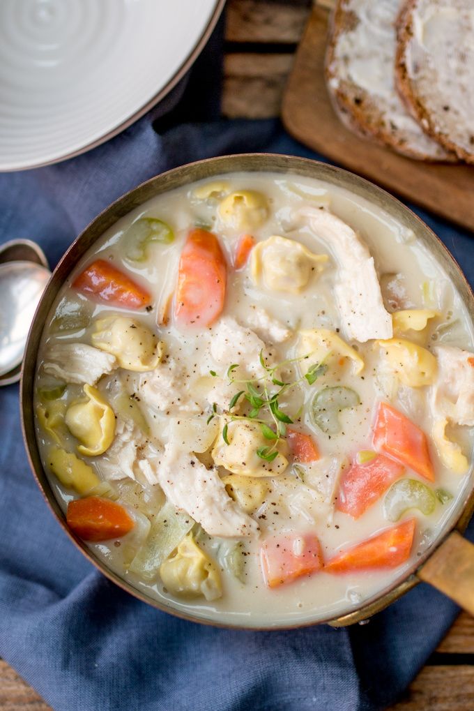 Soups Creamy chicken tortellini soup Nicky Corbishley February 11, 2019 134 Kitchen Sanctuary This Creamy Chicken and Tortellini Soup is serious comfort food – and substantial enough for dinner! Creamy chicken tortellini soup See the full directions on my site