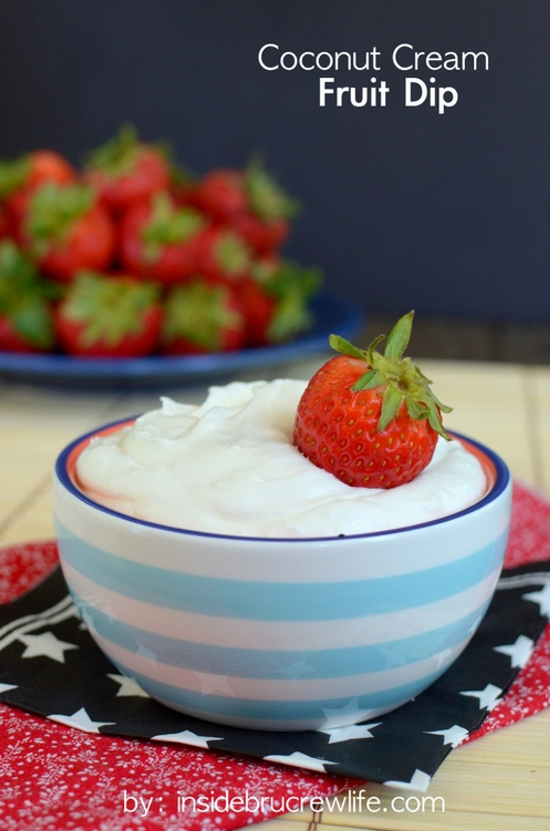 Creamy coconut dip that you will want to dip every thing fruit in to.
