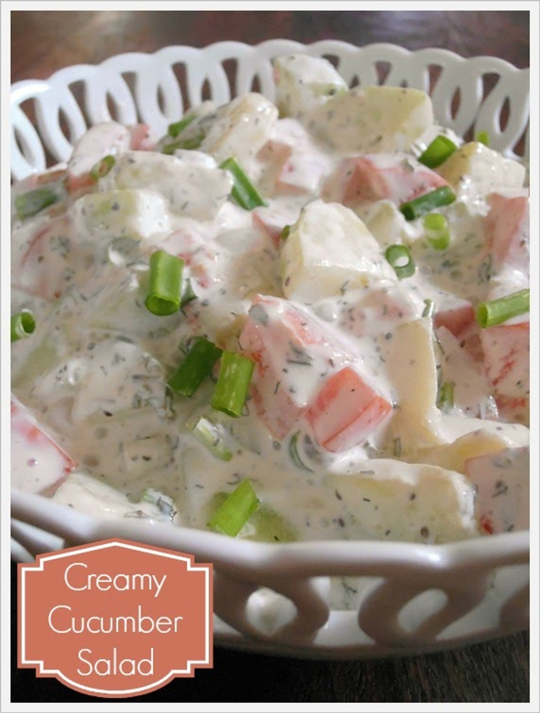 This Creamy Cucumber Salad hits the spot for a refreshing side dish. It's perfect when served with a steak or grilled chicken. Note: This particular recipe does not call for draining the cucumbers. As such, there will be liquid that releases from the cucumbers to create a sauce. If this bothers you, after peeling and slicing the cucumbers into rounds, lay them out on paper towels. Sprinkle them with a small amount of salt and let them drain for one hour. After letting them drain, take a fe