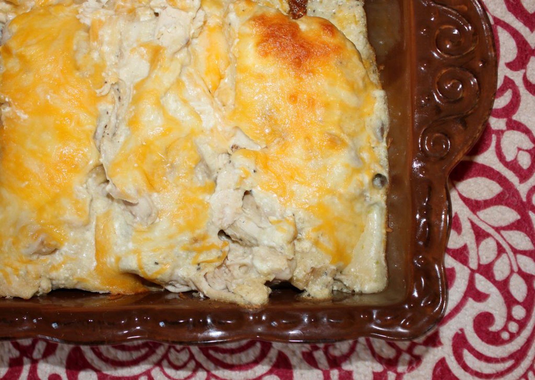 In a saucepan over medium-low heat, stir together enchilada sauce, half-and-half, yogurt, and cream cheese...