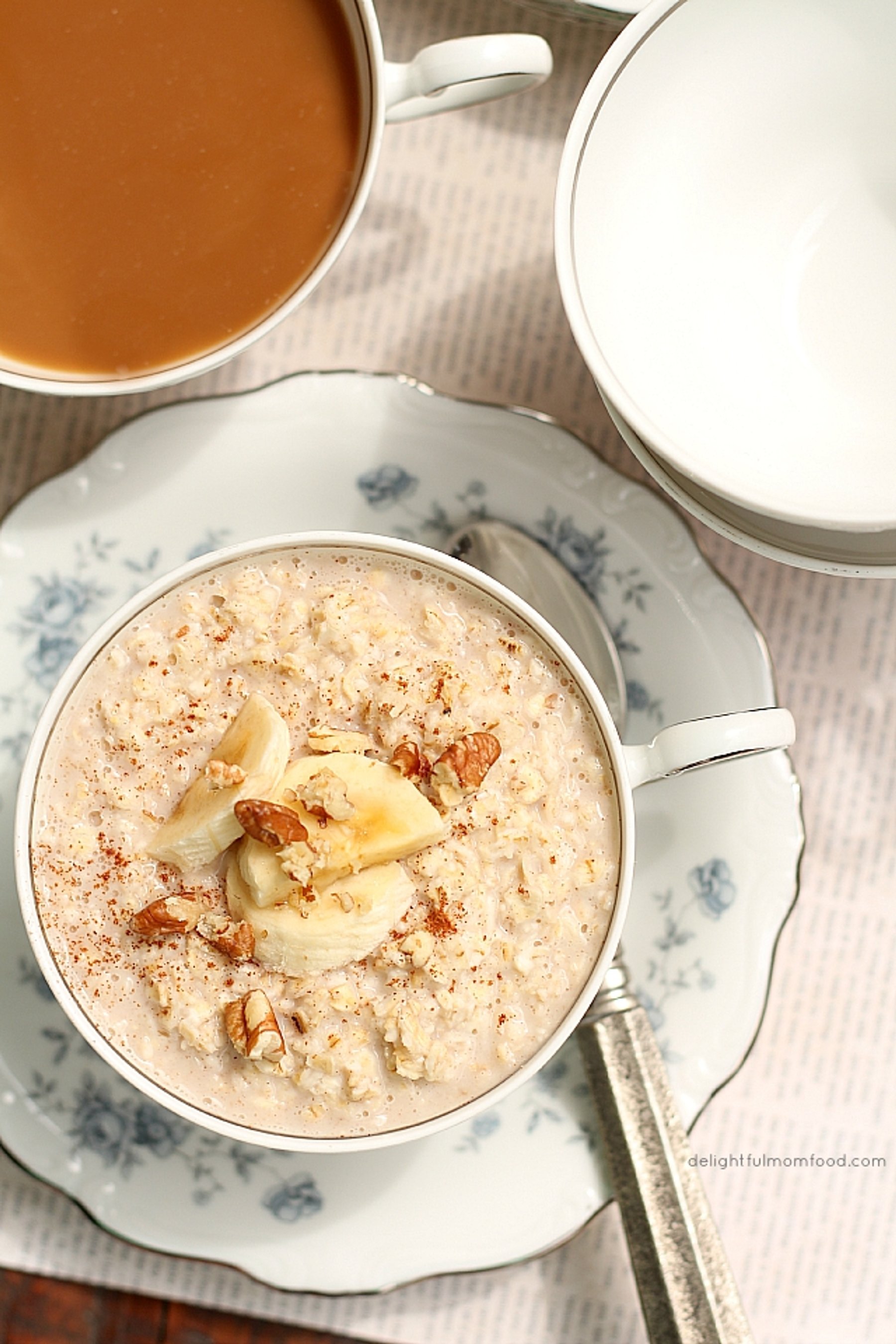 Creamy Instant Oatmeal Topped with Bananas and Pecans is inexpensive, quick, filling, nutritious and kids love it! This one of our family favorite breakfast recipes that I enjoy sharing from our stove top to yours!