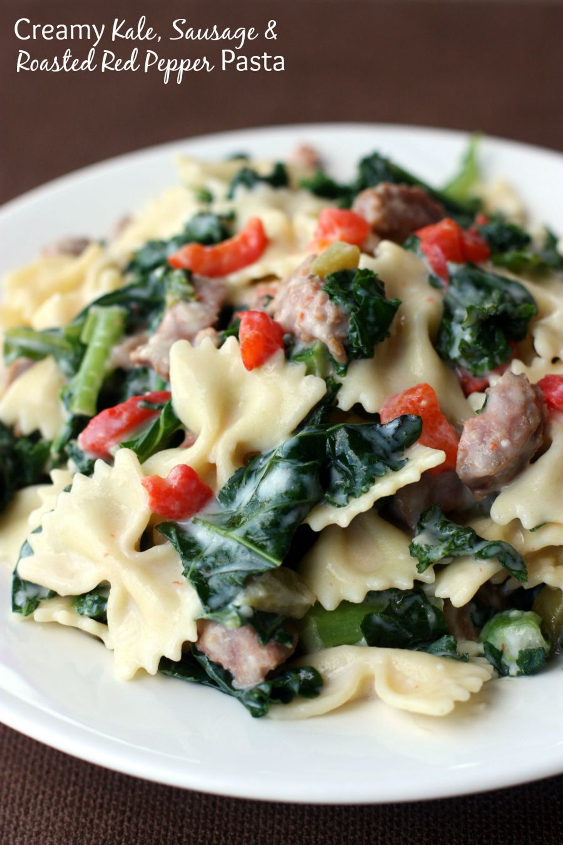 Creamy Kale, Sausage and Roasted Red Pepper Pasta