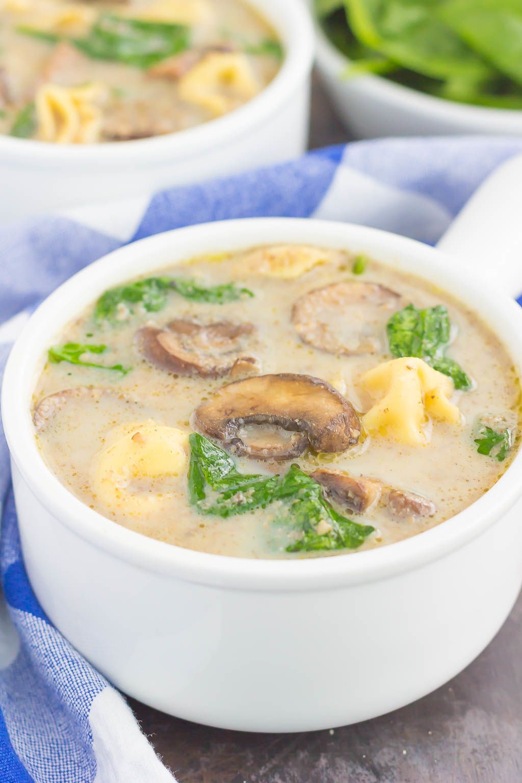 Soups Creamy Mushroom and Spinach Tortellini Soup Gayle BFebruary 26, 2018 85 This Creamy Mushroom and Spinach Tortellini Soup is made in one pot and ready in just 30 minutes!Check out this delicious recipe!See the full directions on my site