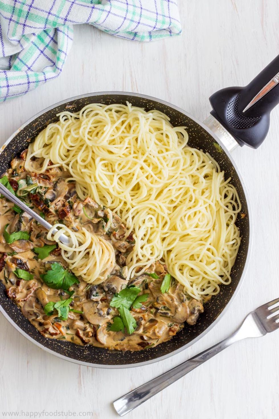 Creamy Mushroom & Sun-Dried Tomato Spaghetti