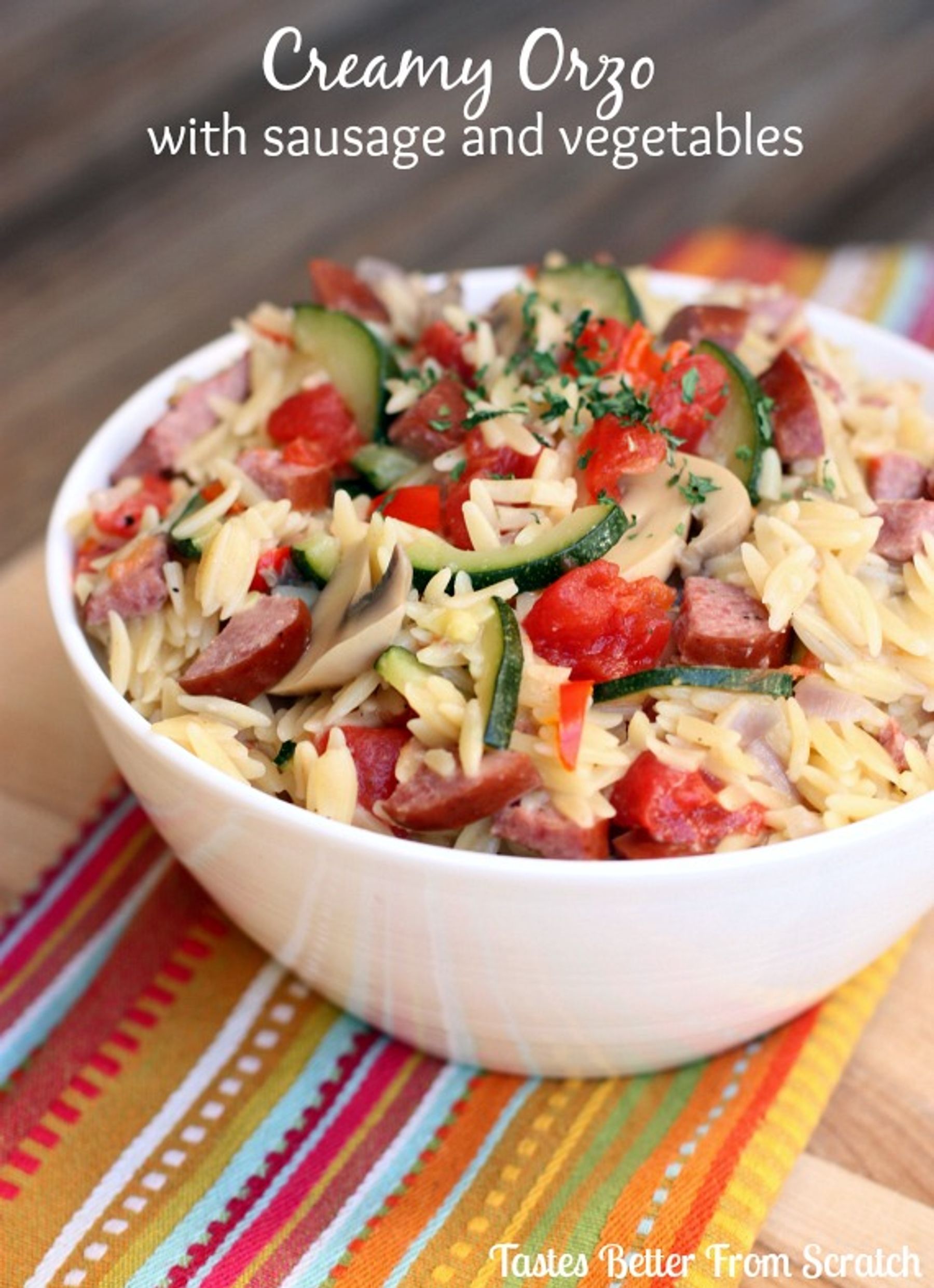 Creamy Orzo with Sausage and Vegetables
