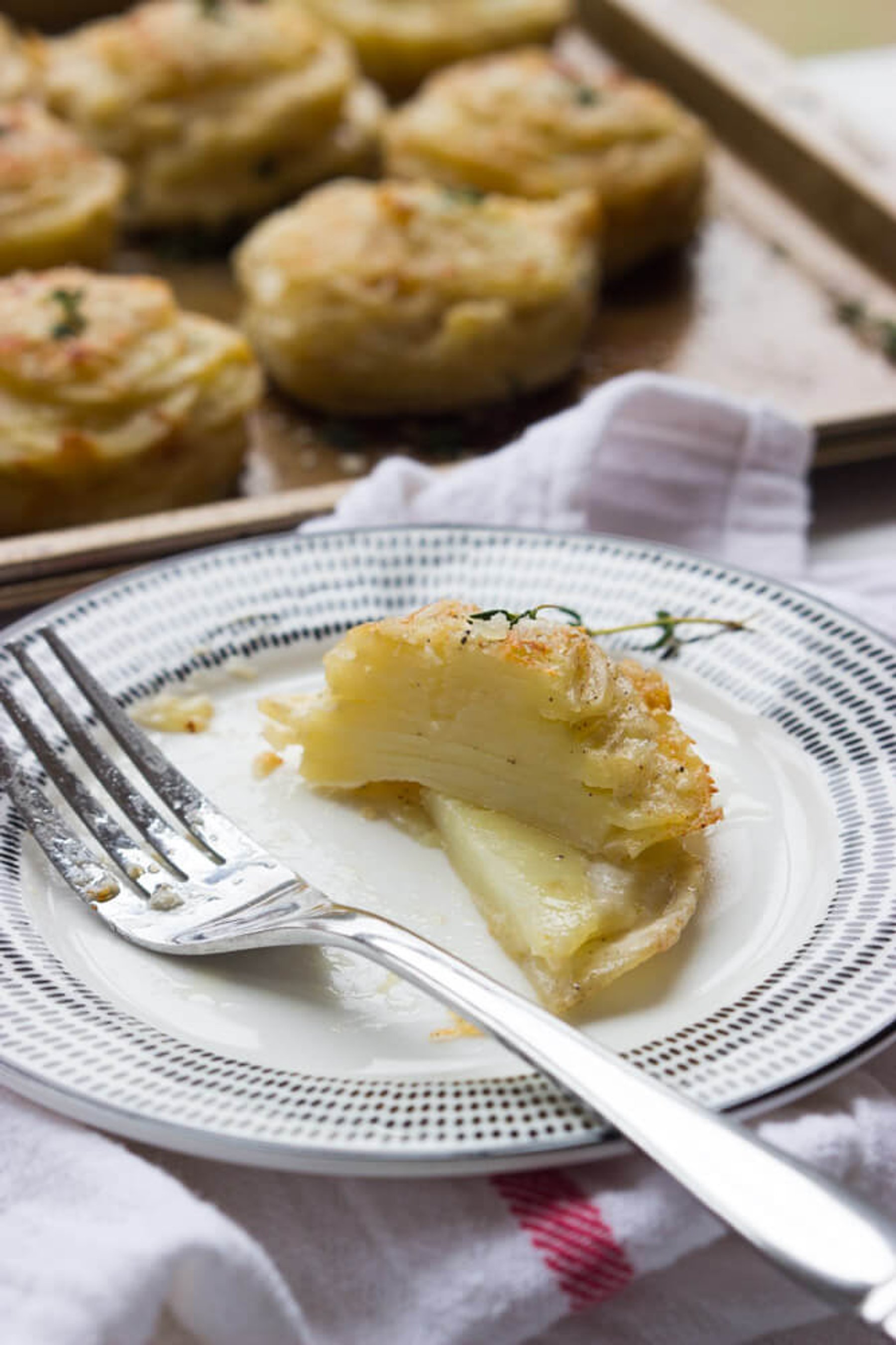 Creamy Potato Stacks with Garlic, Thyme, and Parmesan - Little Broken
