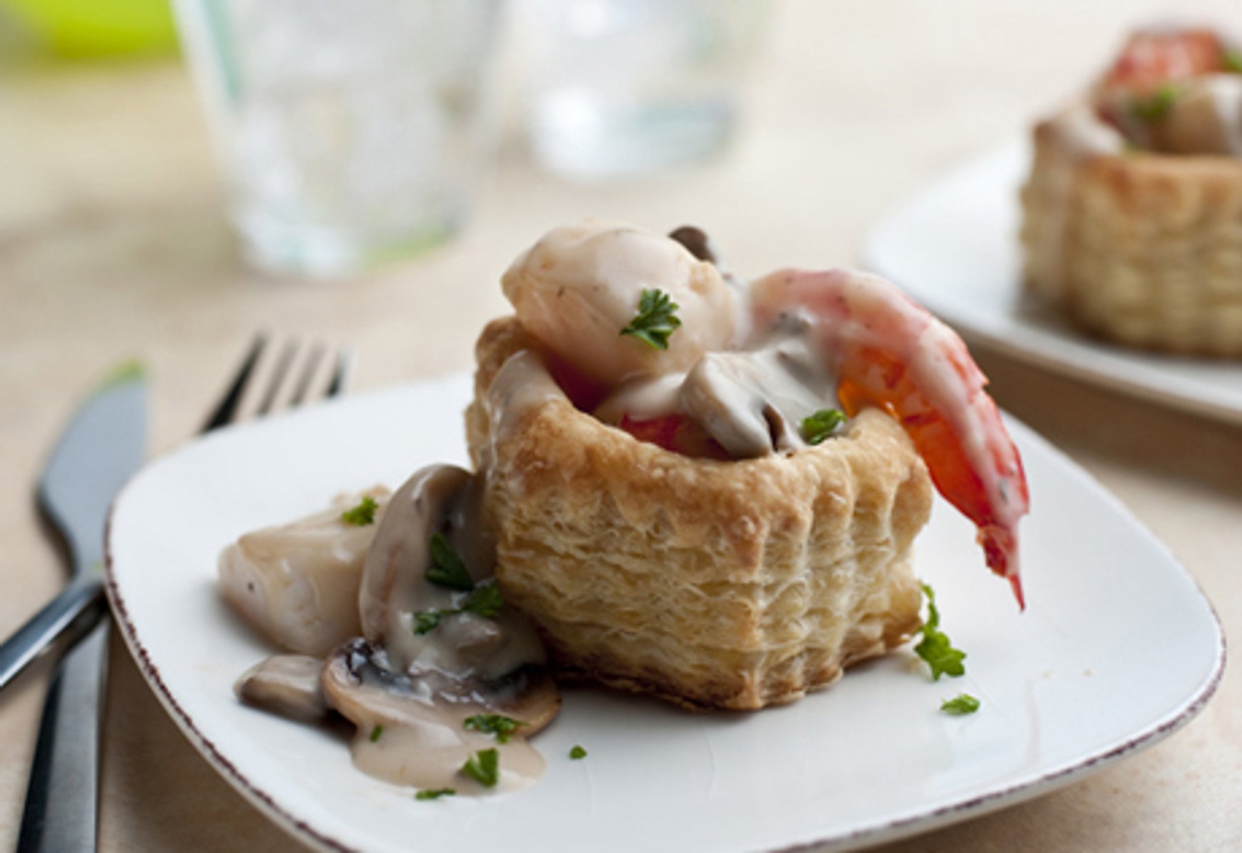 Sautéed shrimp and scallops are bathed in a delicious, creamy mushroom sauce and served in warm pastry shells. It’s an elegant meal with unforgettable taste.