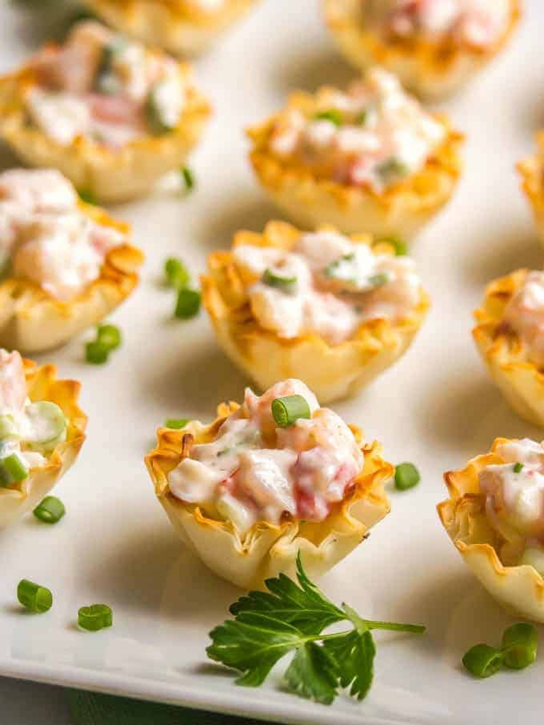 Creamy shrimp salad is perfect for a sophisticated appetizer that’s easy to throw together and can be served in phyllo cups or endive leaves, with crackers, or on toast points or baguette slices.