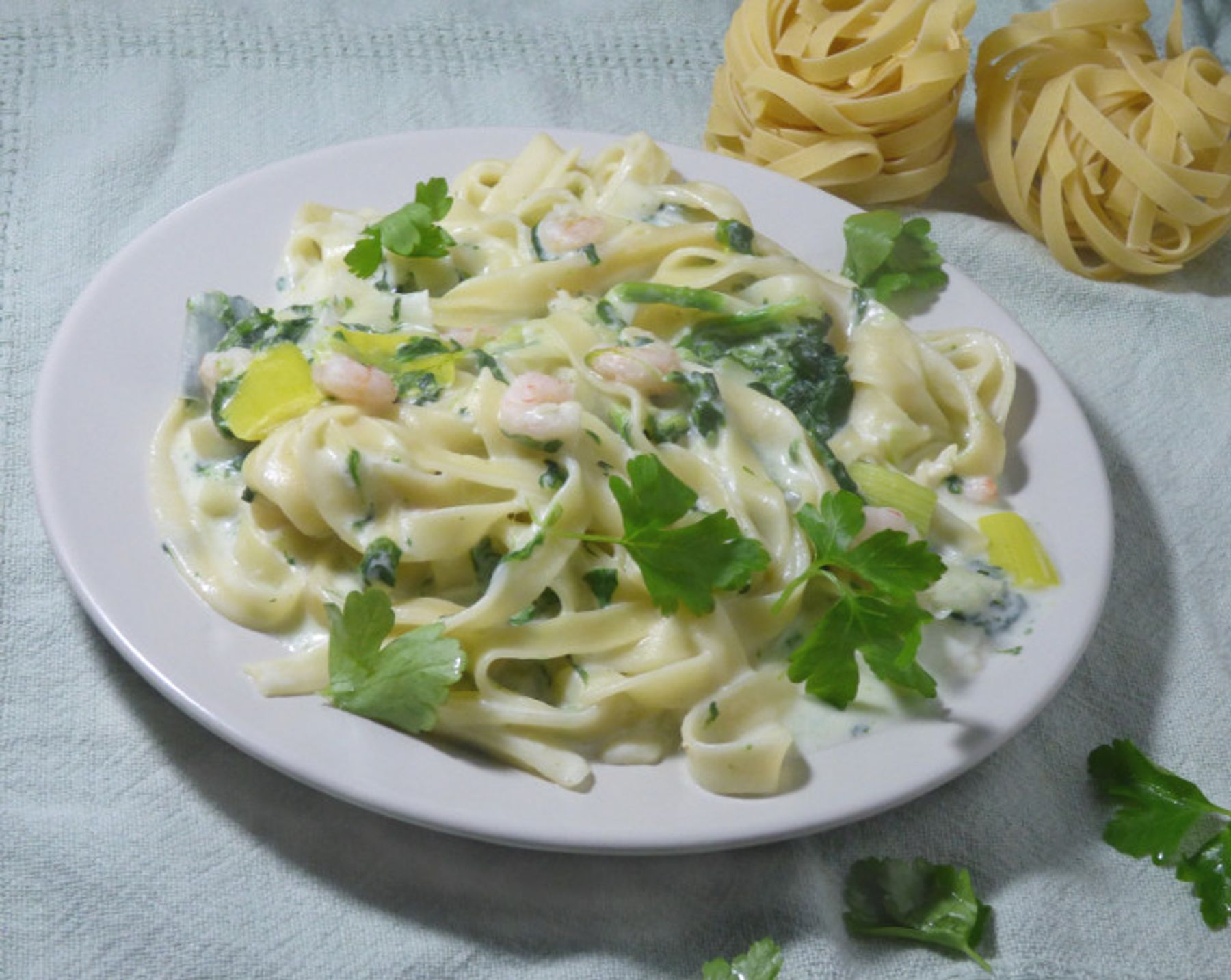 Main Dishes Creamy Spinach Pasta with Prawns and Leek Lizzie Butterworth February 07, 2017 34 This elegant, creamy pasta dish is so easy it\\\'s perfect for busy weeknights http://busylizziecooks.com/creamy-spinach-pasta-prawns-leek/ See the full directions on my site Pasta Dinner Boiled Valentines Day Italian