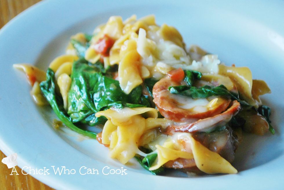 Thinly slice the smoked sausage and add it to a large skillet with 1 tablespoon of olive oil. Saute the sausage over medium heat until it is nicely browned (about 5-7 minutes). Drain off the excess...