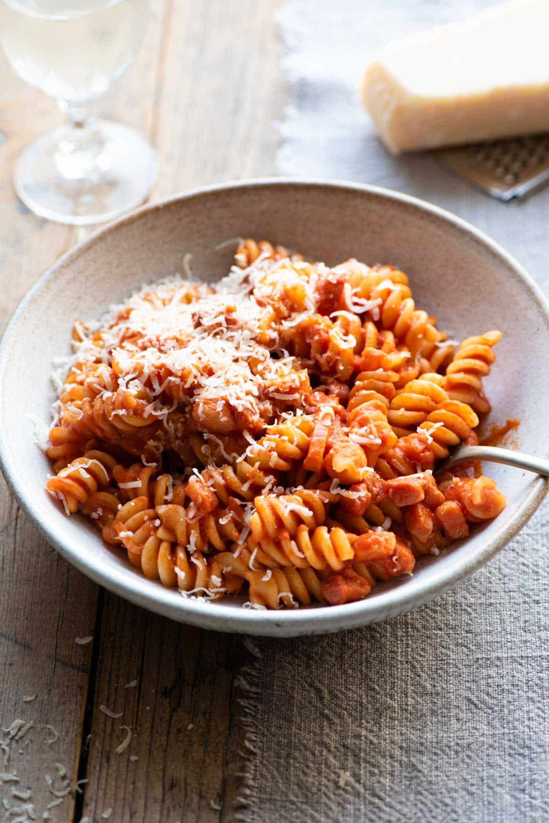 Creamy Tomato Pasta with Pancetta and Shallots - Inside The Rustic Kitchen