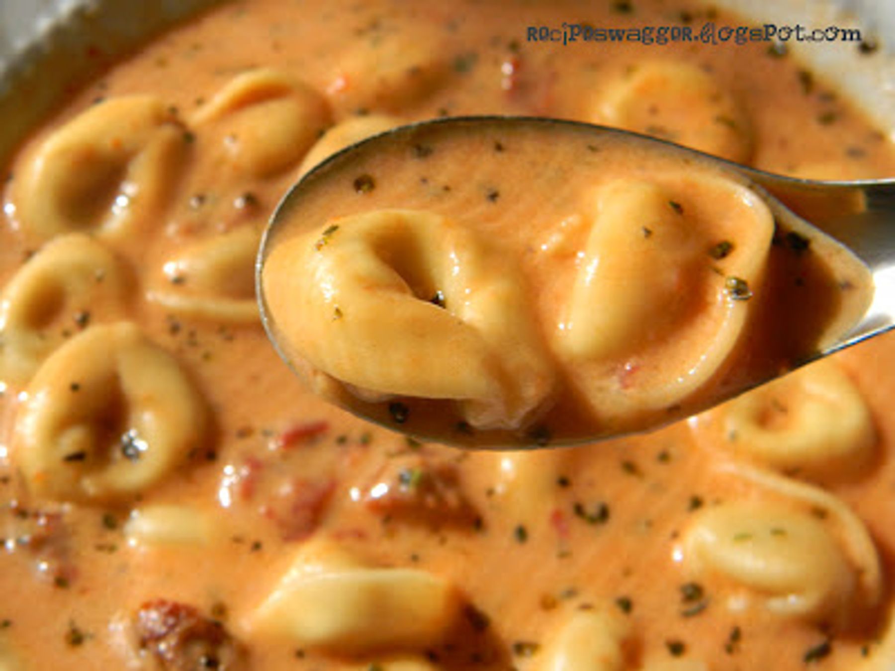 Once simmering, drop tortellini into the soup. Cook according to the package directions.