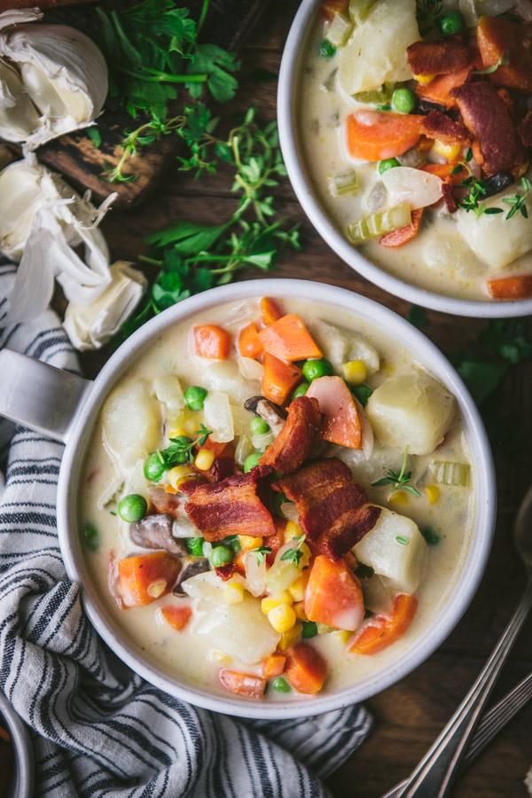This creamy vegetable soup is full of fresh veggies, herbs, potatoes and cheese, then finished with a touch of smoky bacon. Serve a bowl of the easy chowder for a cozy lunch or dinner on chilly days. It's delicious with a side of cornbread, a loaf of crusty baguette, or some warm, flaky buttermilk biscuits!