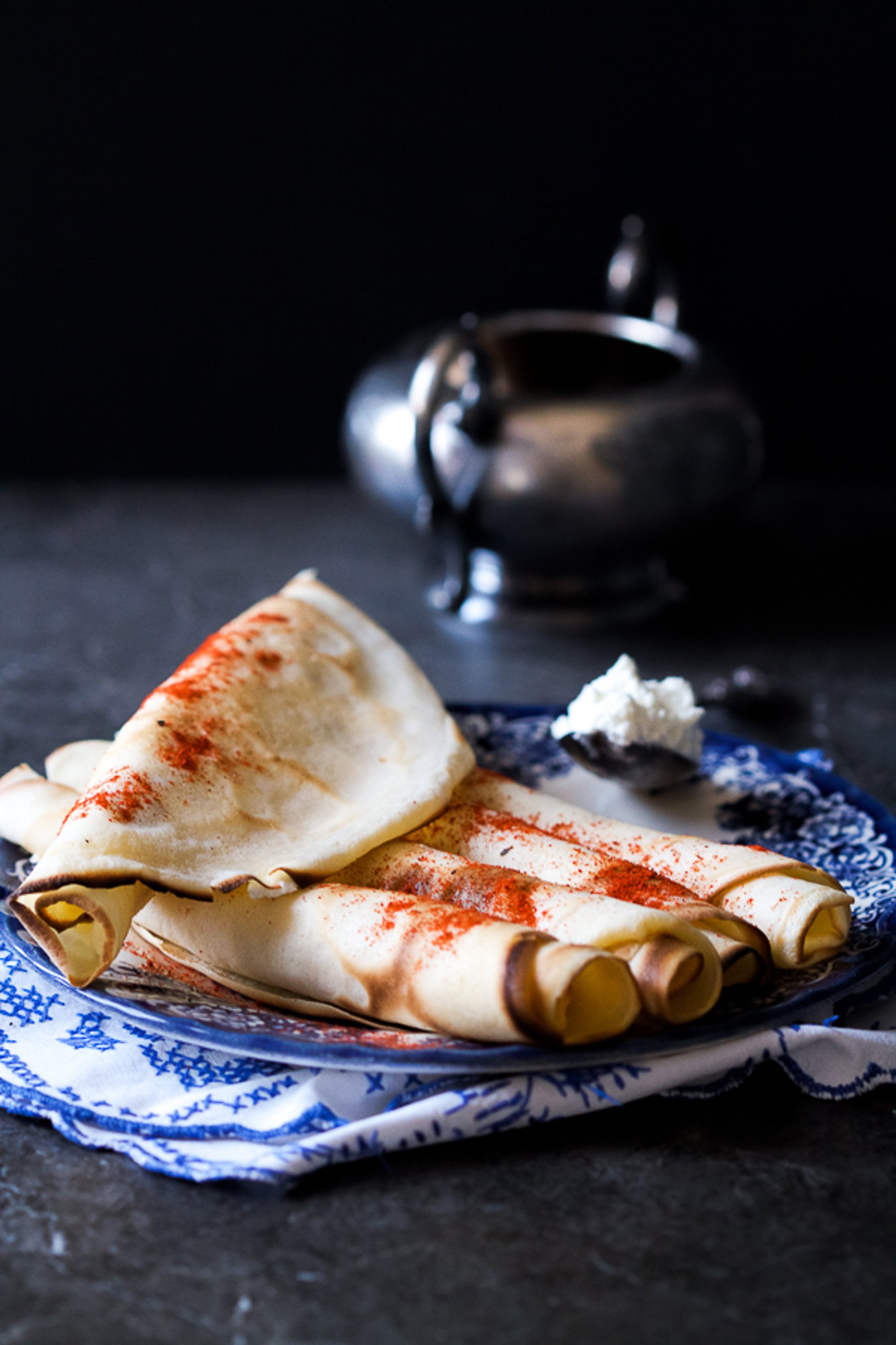 What pancakes are for the Americas, crepes (or as we like to call them, palacinke) are for the Balkans (I mean in the popularity realm). For lunch today we make the laciest, softest, most savory crepes filled with goat cheese.
