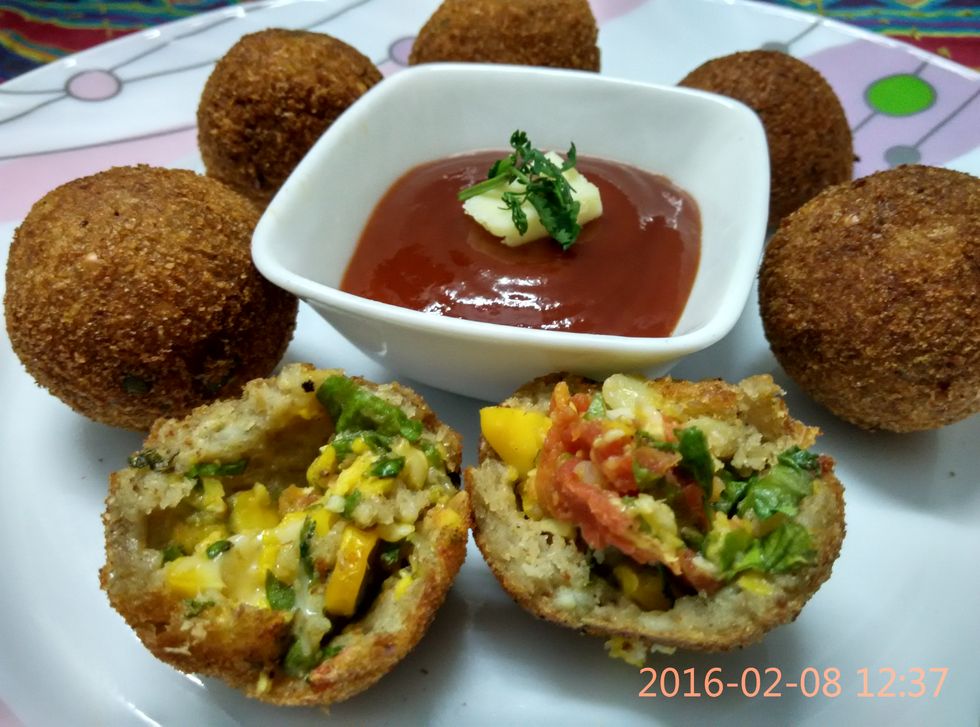 1. 1 cup mixed vegetables, boiled and mashed (corn, carrot, Green Peas, onion)