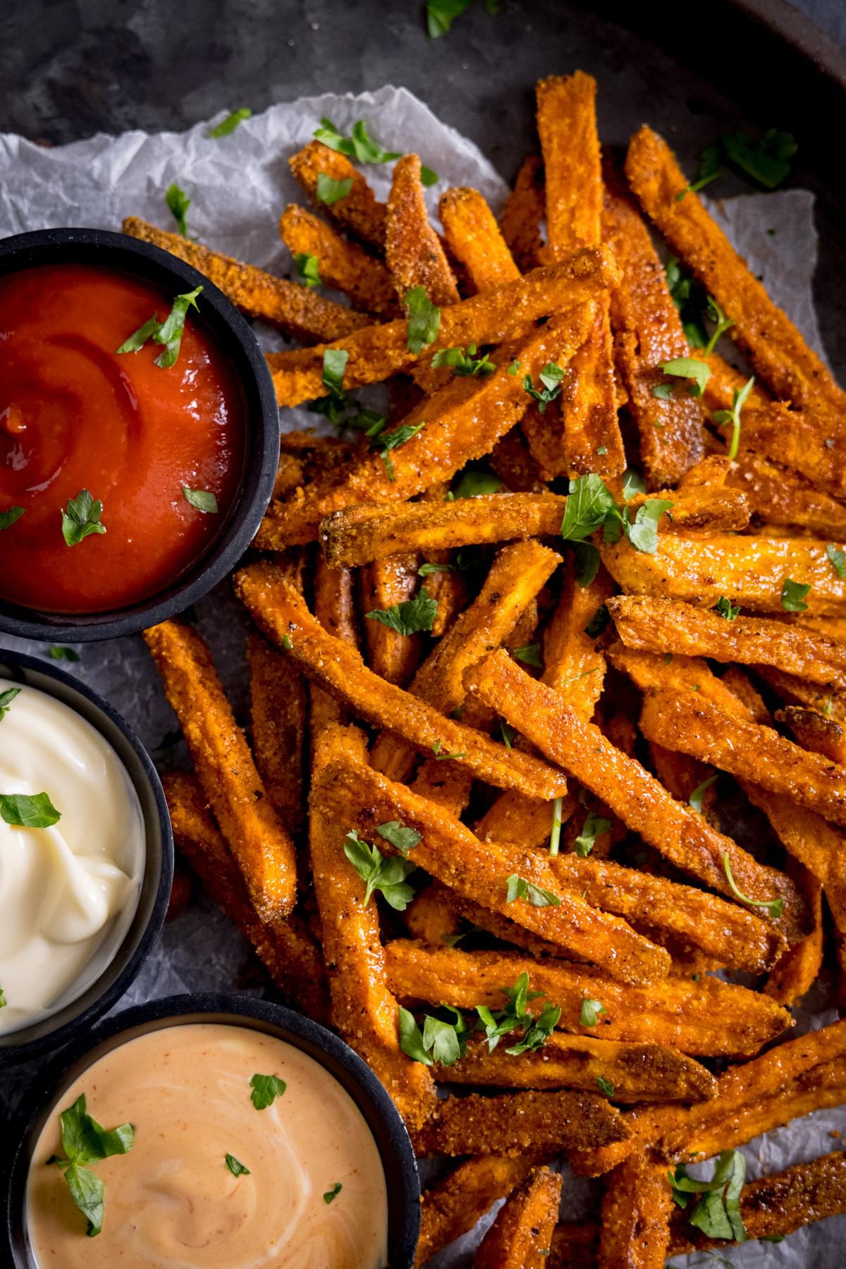 Crispy Baked Sweet Potato Fries Nicky CorbishleyOctober 18, 2021 28 Kitchen SanctuaryBeautifully seasoned sweet potato fries that are crispy, not chewy (there's a key ingredient to ensure this!). A quick and simple recipe.Crispy Baked Sweet Potato FriesSee the full directions on my site