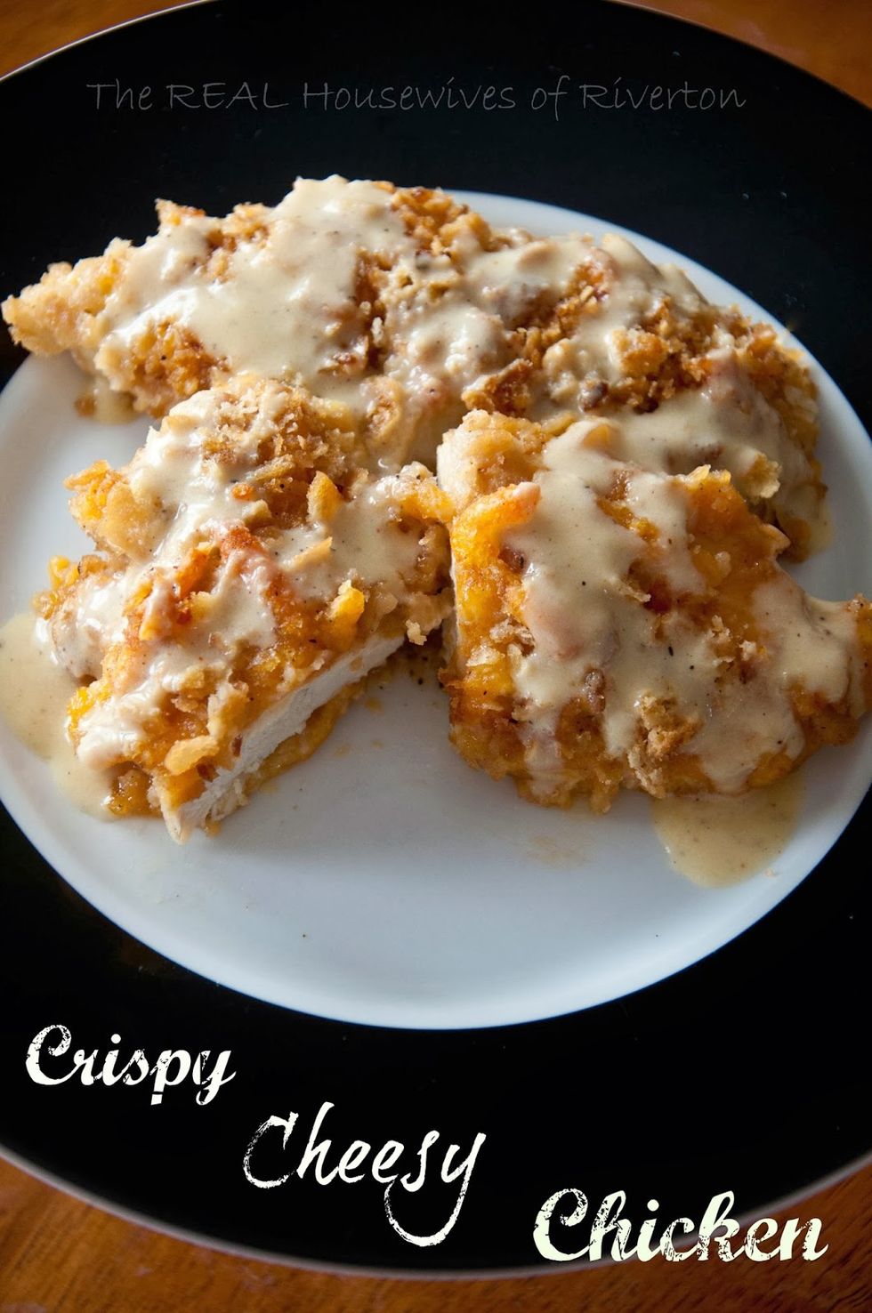 Crispy baked chicken with yummy cheese flavor and a delicious creamy sauce!