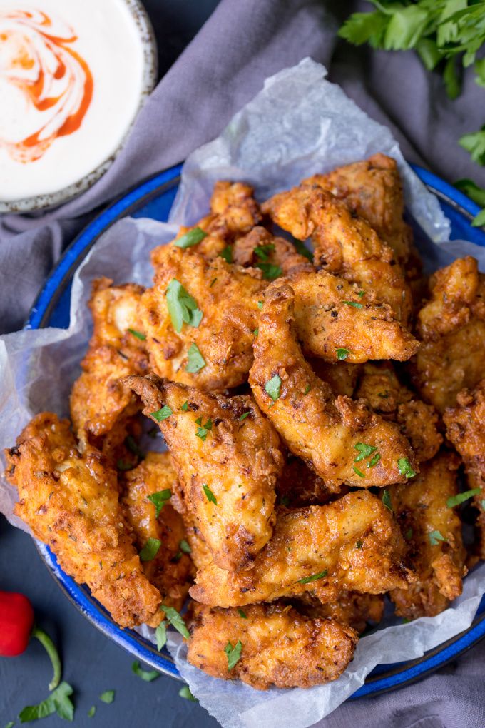 Crispy Chicken Tenders with Garlic Chilli Dip! My technique for chicken that's juicy on the inside, crunchy on the outside and packed with flavour!