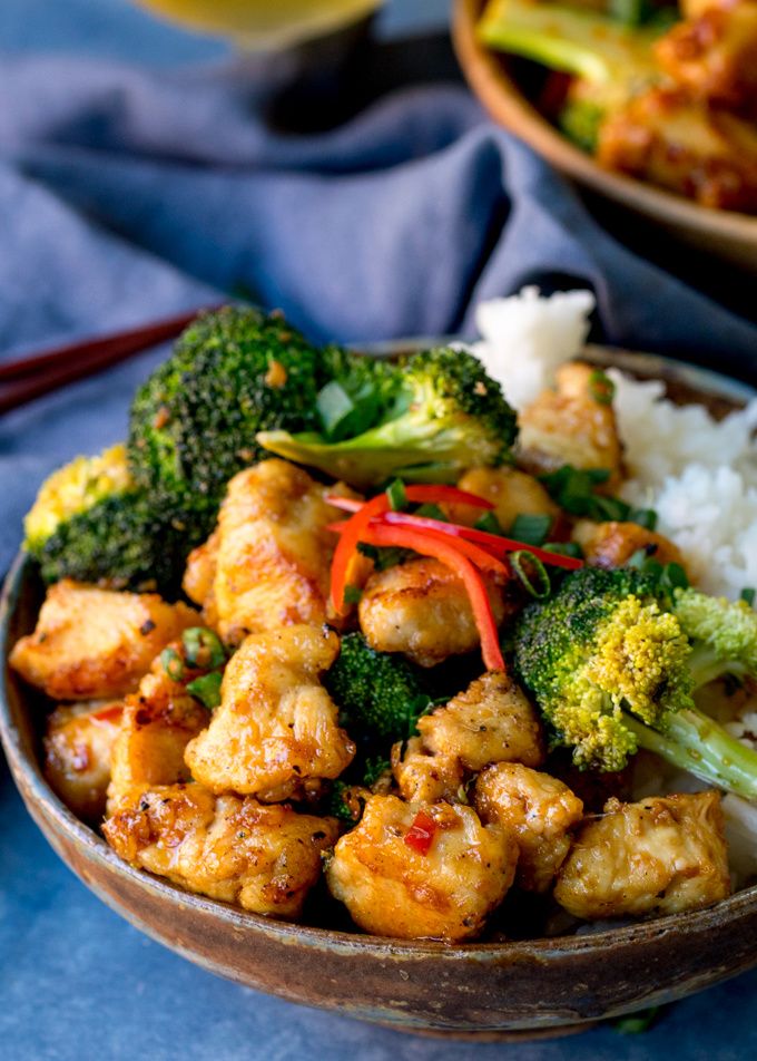 Crispy Chilli Chicken with Broccoli. A quick Asian-style chicken stir fry, ready in 20 minutes! Including gluten free instructions.