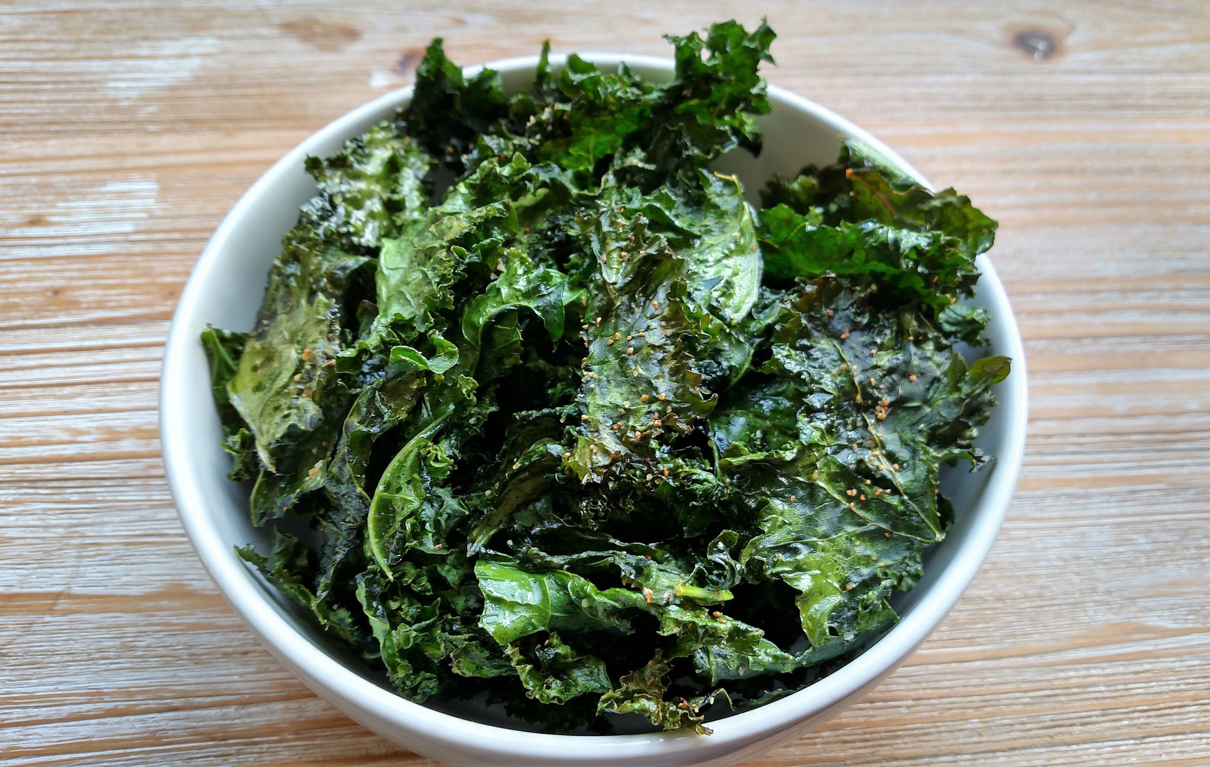 - Preheat oven to 350. Rinse kale and dry it very, very well. We don't want soggy chips! Tear large pieces of kale off the ribs and place them in a gallon-size zipper bag. A little bit at a time,...