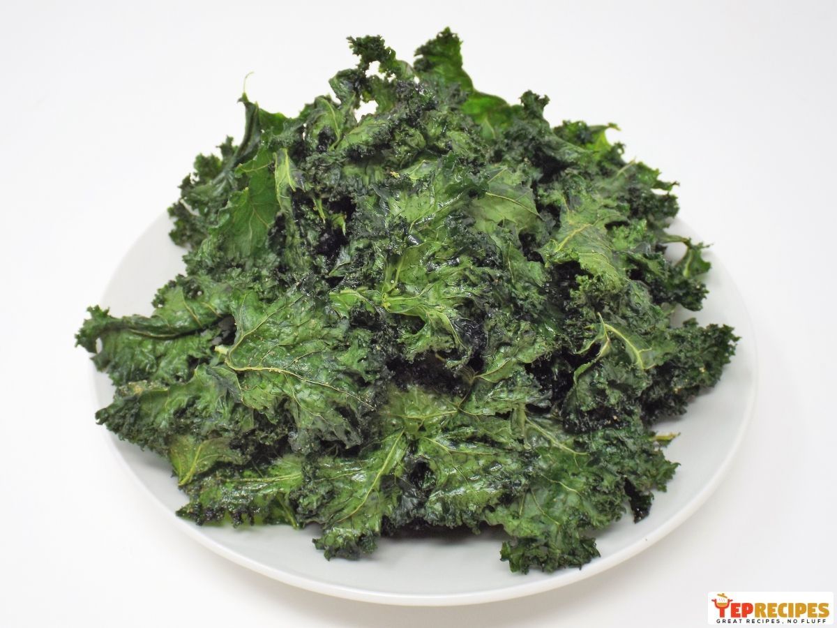 Light, delicate, and crispy oven baked kale chips with a hint of garlic.