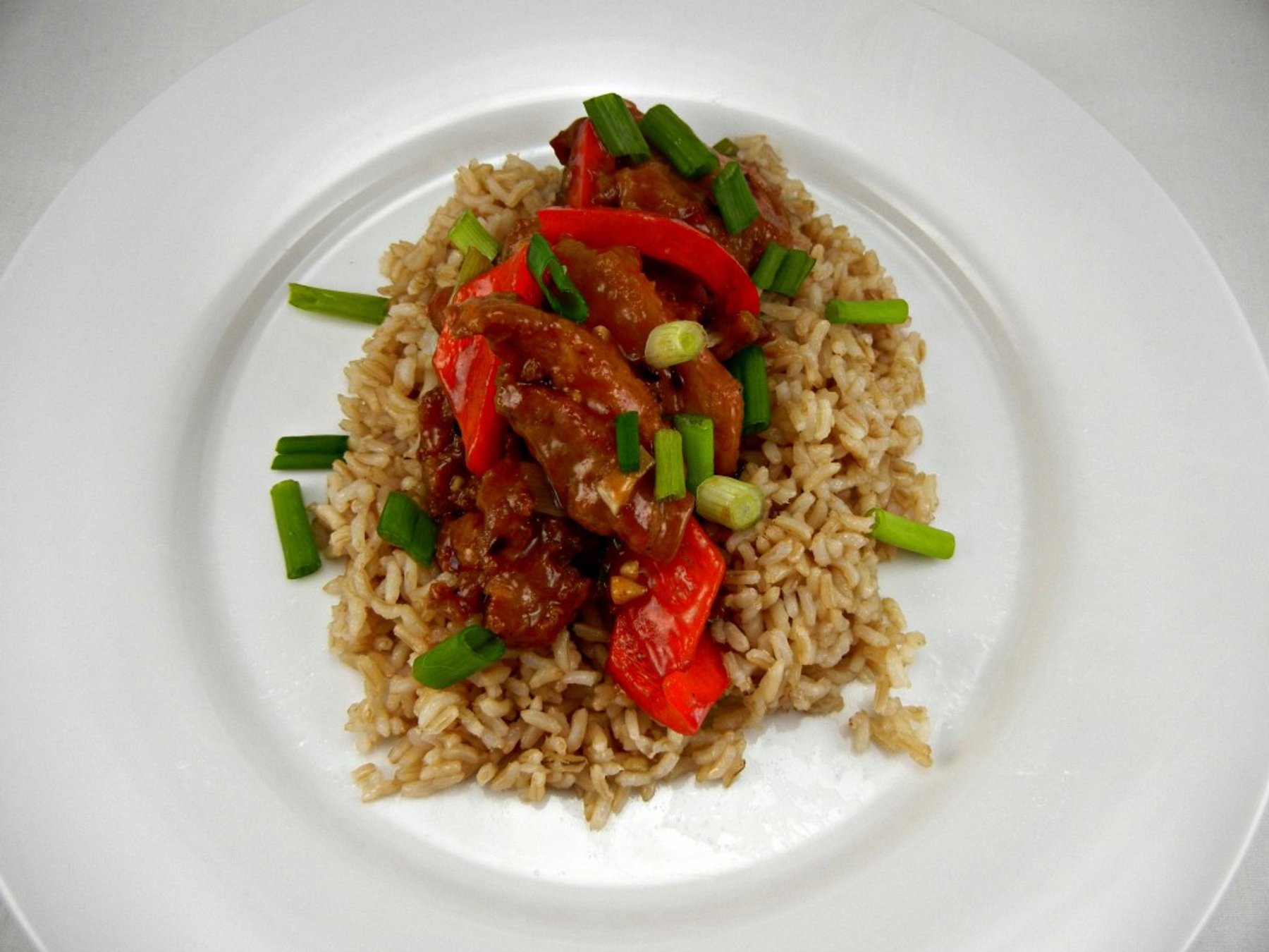 Crispy Hunan Chicken tastes just like what you’d order from your favorite Chinese restaurant. The pieces of chicken are perfectly crispy. The sauce is made from scratch and had me licking my plate. It was spicy with a hint of sweetness. Fresh ginger and garlic make the Hunan Sauce better than any kind of those pre-made sauces you can get at the grocery store. Adding fresh red peppers at the end of cooking kept the diced veggies crisp.