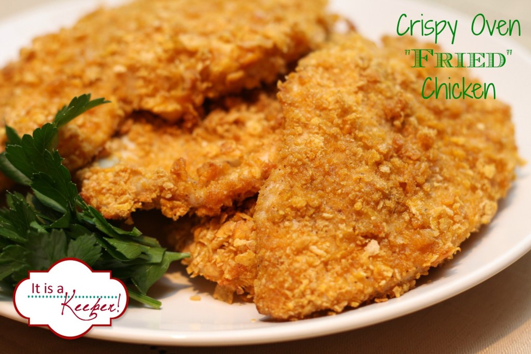 The secret to the uber crispy, super crunchy crust is good ol’ fashioned corn flakes. Yep, that’s right, breakfast cereal. Just pulverize them into crumbs and you’ve got yourself a deep fried fake-out! Then just mix it up with my secret blend of 11 herbs and spices.